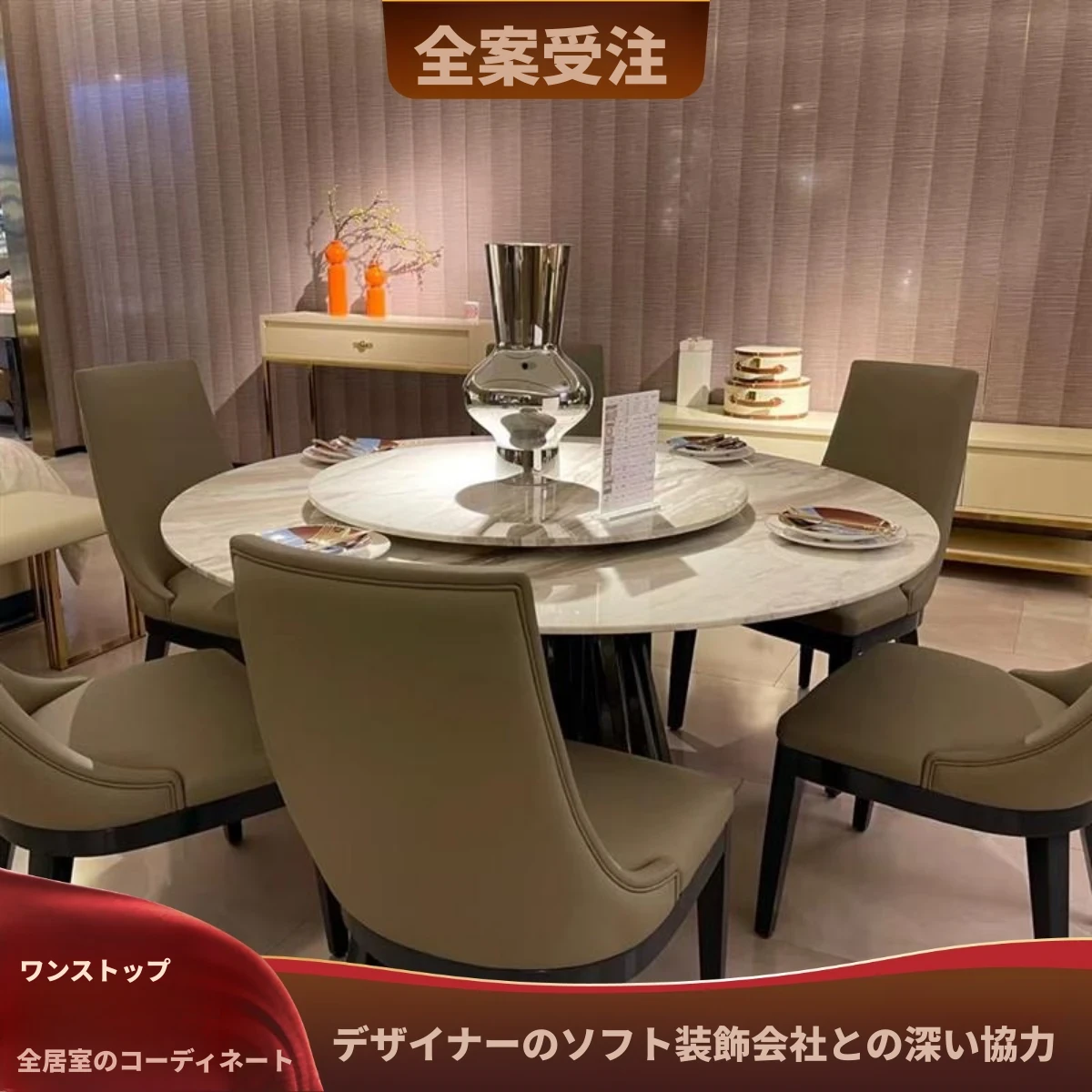 高級感溢れる輸入天然大理石のラウンドダイニングテーブル&チェアセット - ヴィラや家庭にぴったりなモダンな軽奢スタイルの食卓を演出!