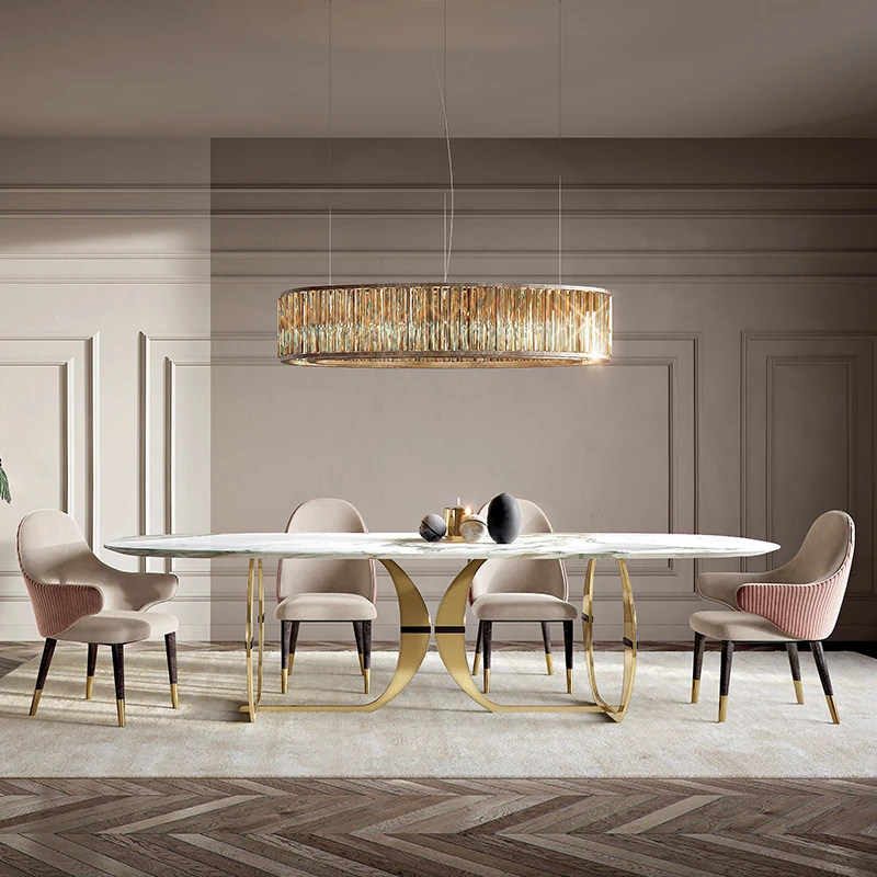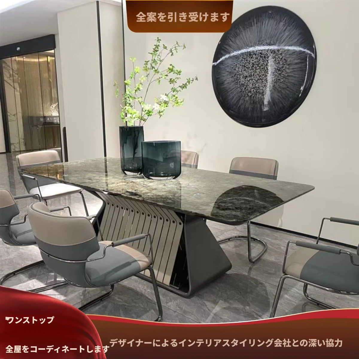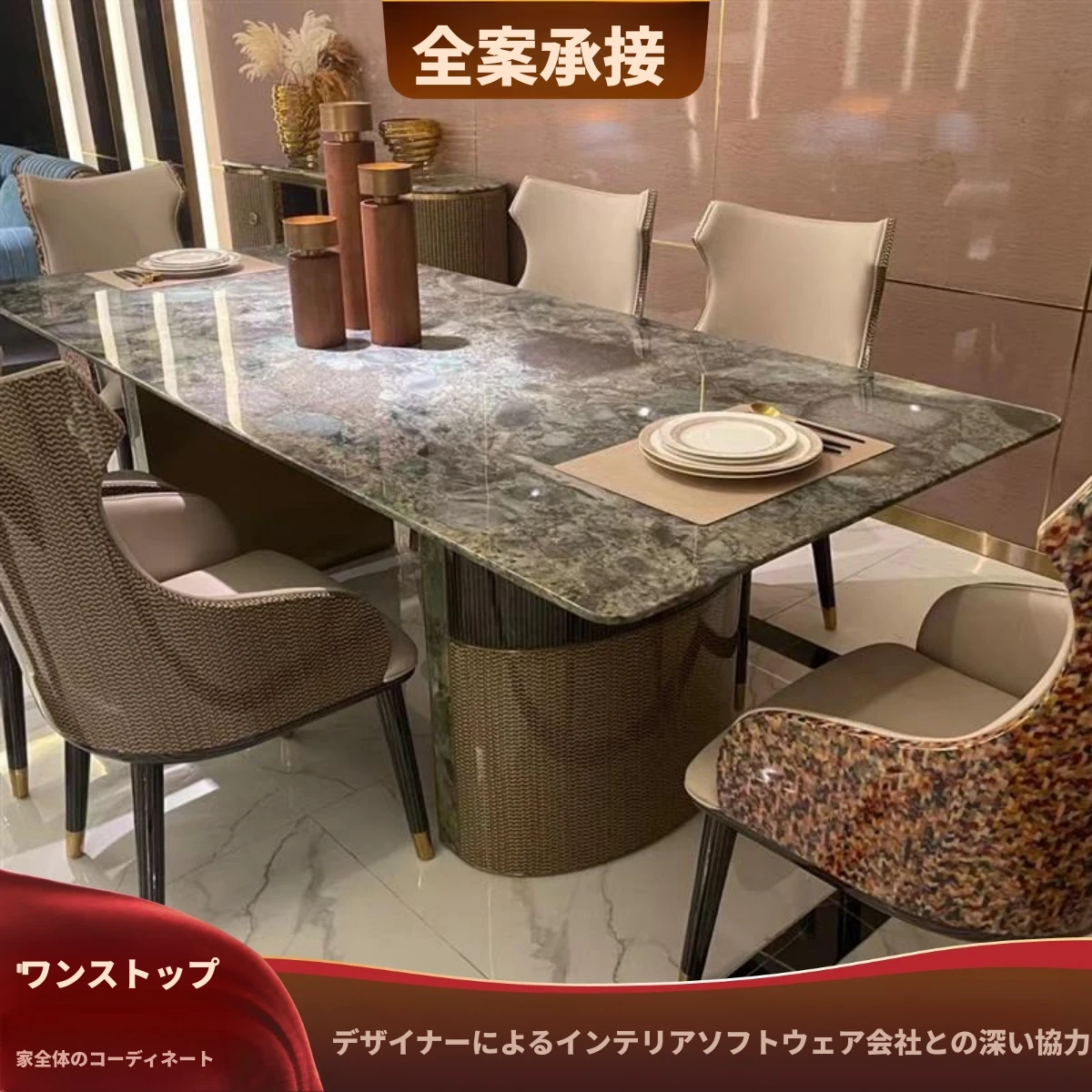 豪華イタリアンデザインの軽奢華ダイニングテーブル&チェアセット - 大理石を使用した高級感溢れる長方形テーブルで、ヴィラや広々とした平屋にぴったりな洗練されたインテリアを演出します。
