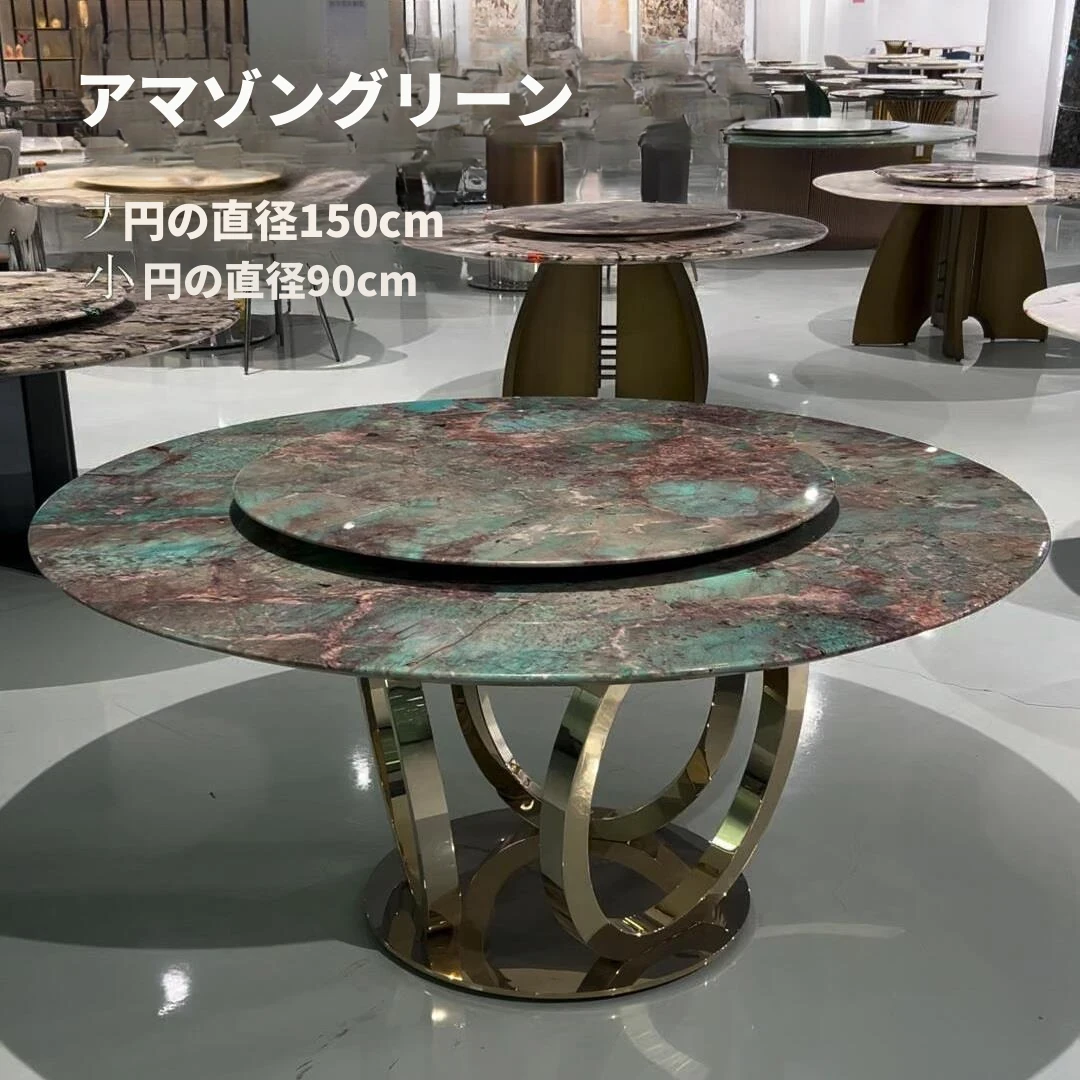 天然大理石製ラウンドダイニングテーブル|高級ホテルや豪邸に最適|モダンなリビングにぴったりの洗練されたデザイン|高級感あふれる空間を演出するための理想的な選択!