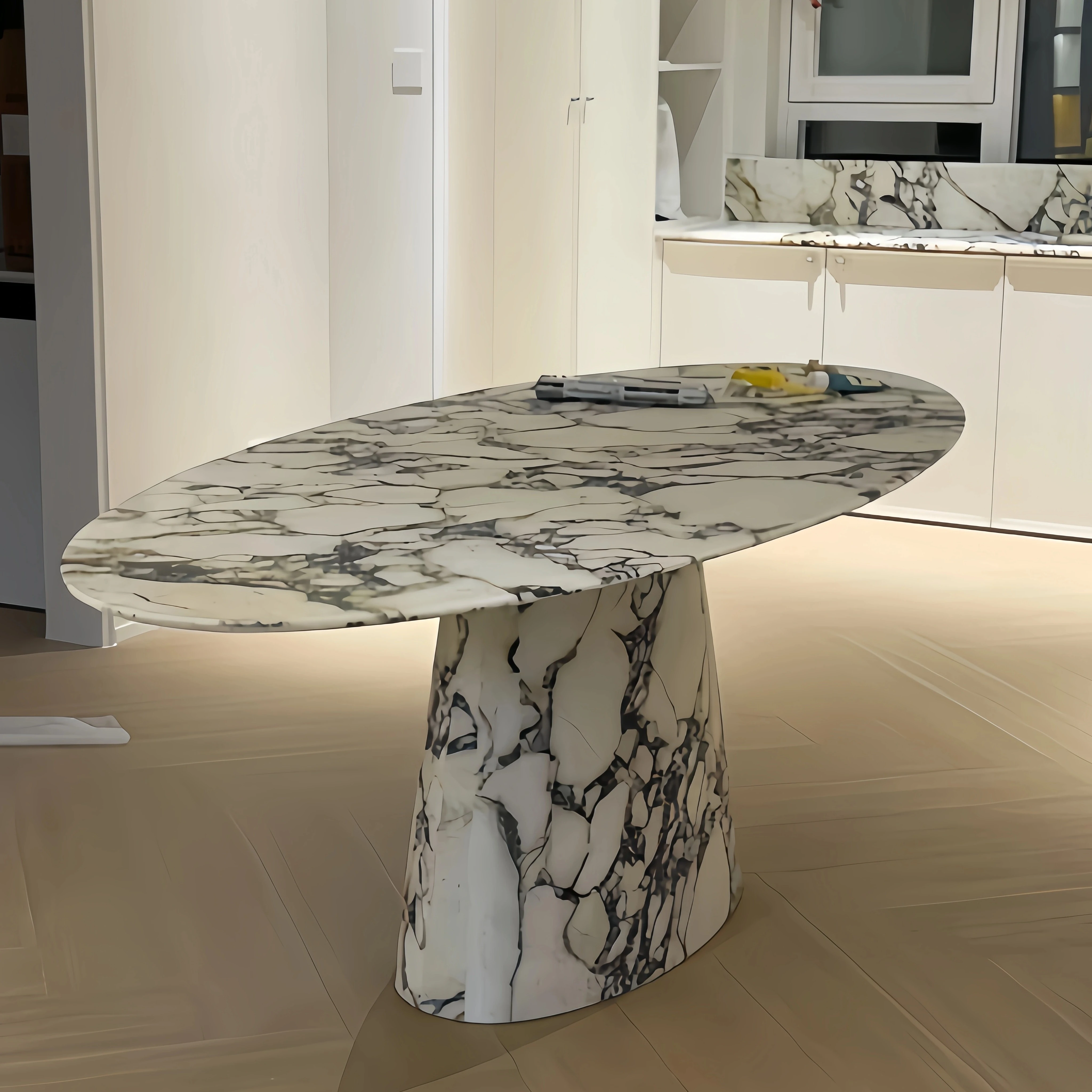 イタリア製天然大理石のデザイナーテーブル - ヴィラのリビングにぴったりな侘寂風のレトロオーバルテーブル!優雅なデザインで、心地よい食事空間を演出します。