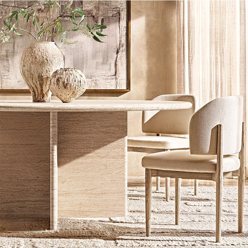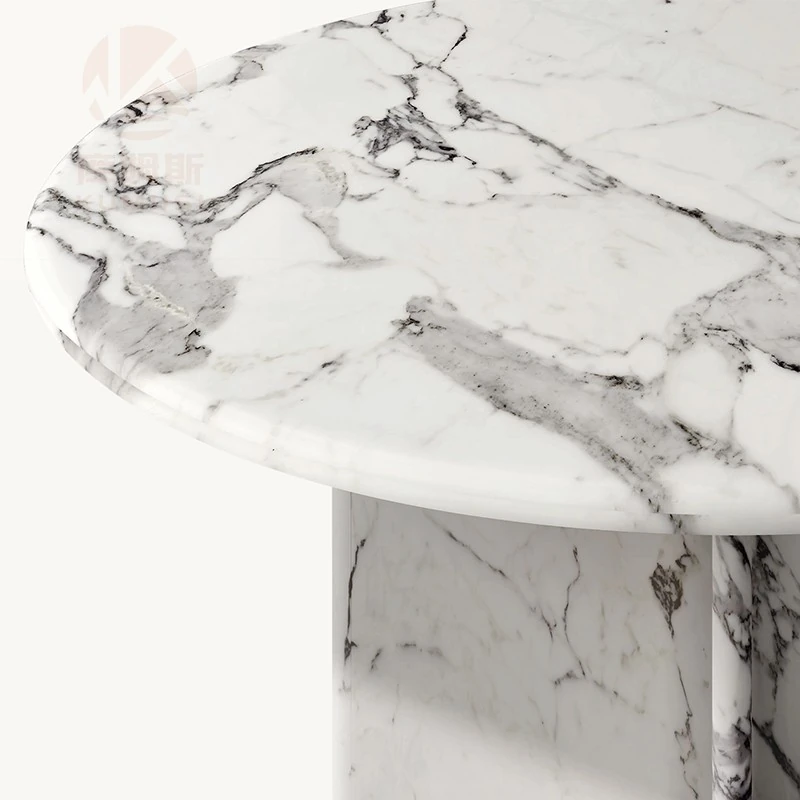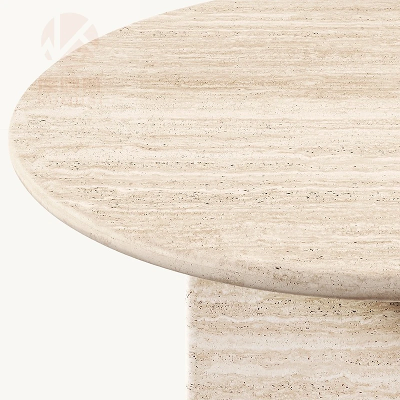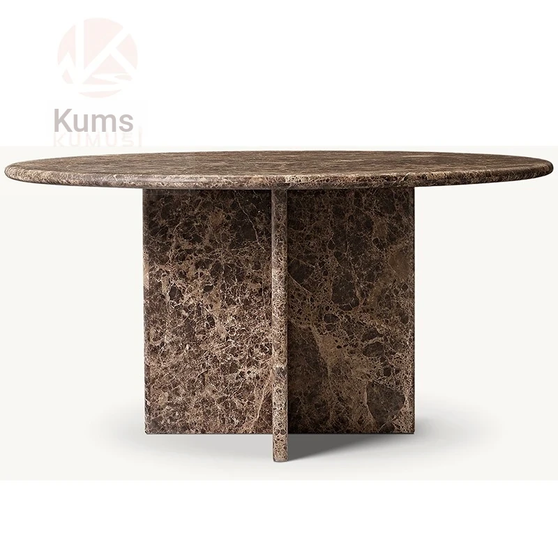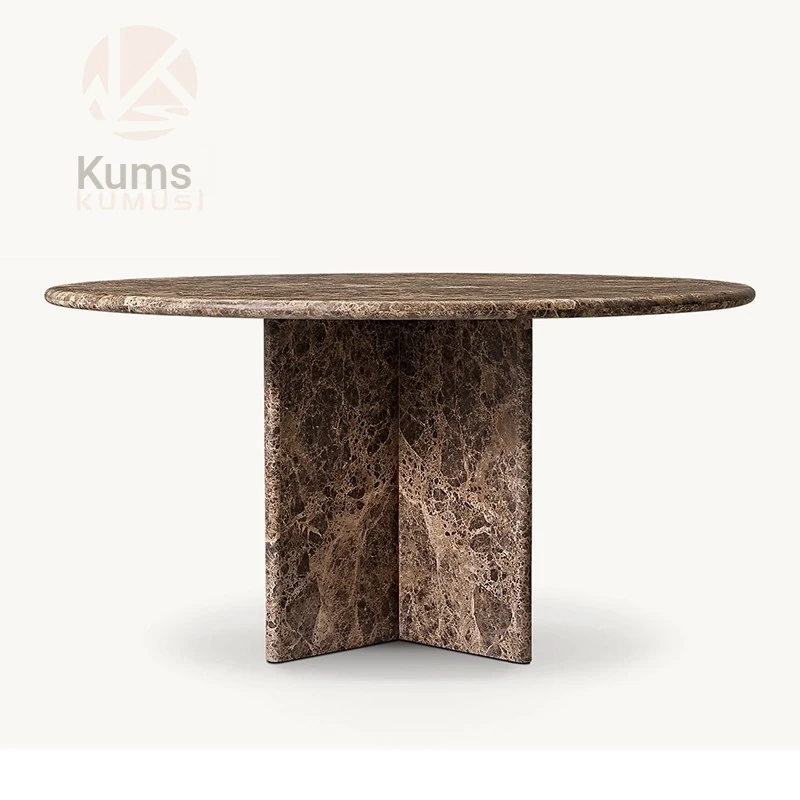 Designer Italian Natural Marble Round Dining Table - Luxury Wabi-Sabi Style for Villa and Home Living Room