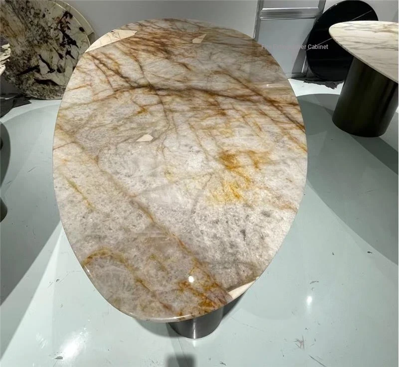 Designer Luxury Dining Table with Natural Marble for Elegant Open-Concept Spaces - Modern Minimalist Dining Experience for Upscale Living