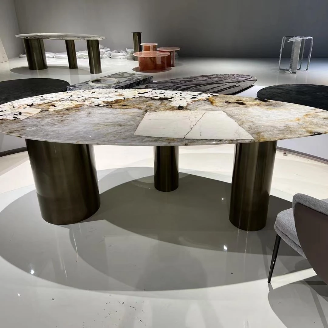 Designer Luxury Italian Marble Dining Table - Modern Minimalist High-End Hotel Style with Natural Stone Elegance for Upscale Living Spaces