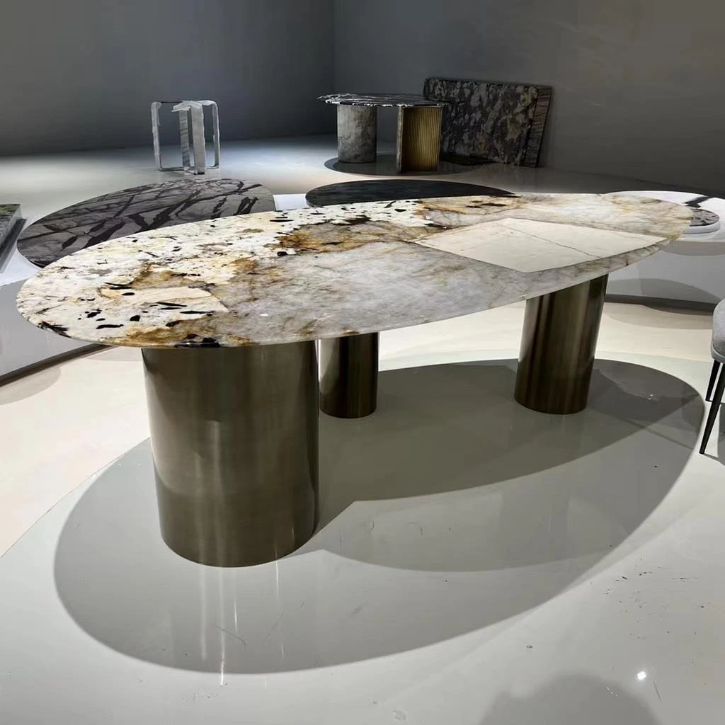 Designer Luxury Rectangular Marble Dining Table for Upscale Homes, Villas, and Spacious Mansions – Elevate Your Dining Experience with Sophisticated Style and Elegance.