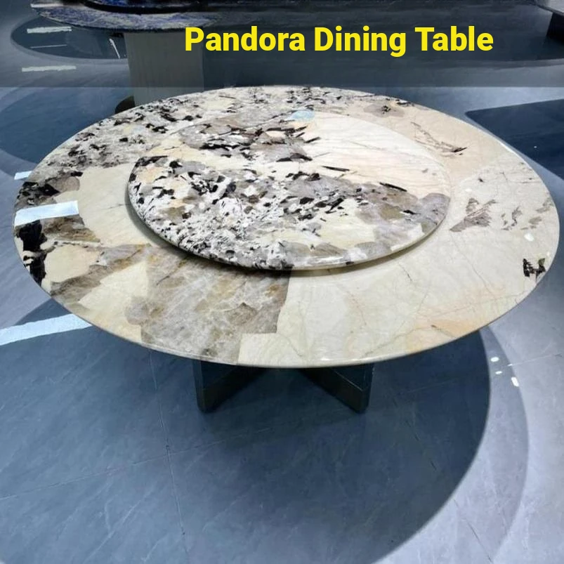 Elegant Green Marble Dining Table and Chair Set - Modern Minimalist Round Table with Lazy Susan for Home Dining Room