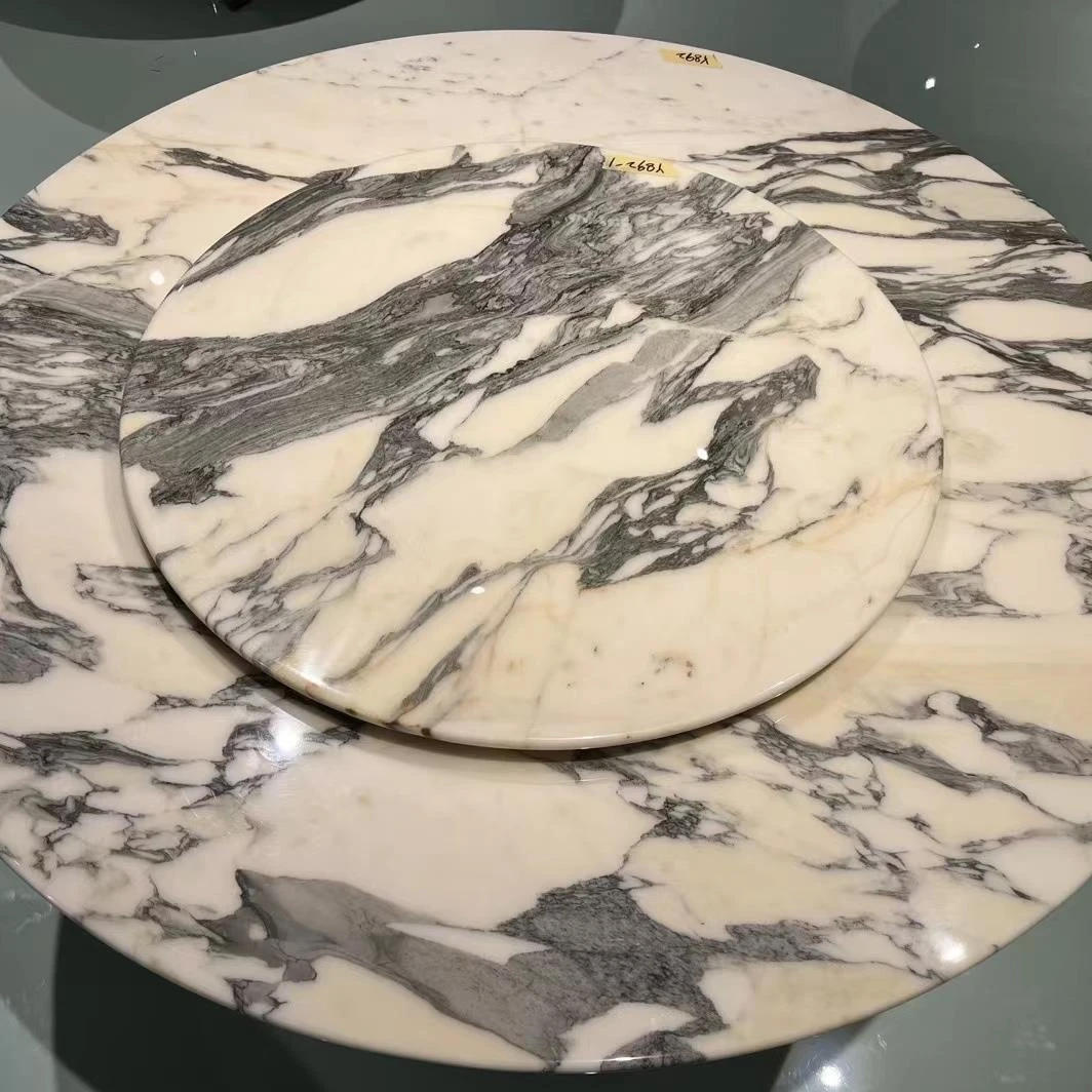 Elegant Italian Marble Dining Table Set with Modern Round Design and Rotating Tray - Luxury Home Décor for a Stylish Dining Experience
