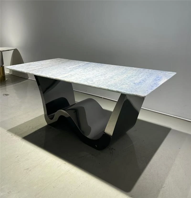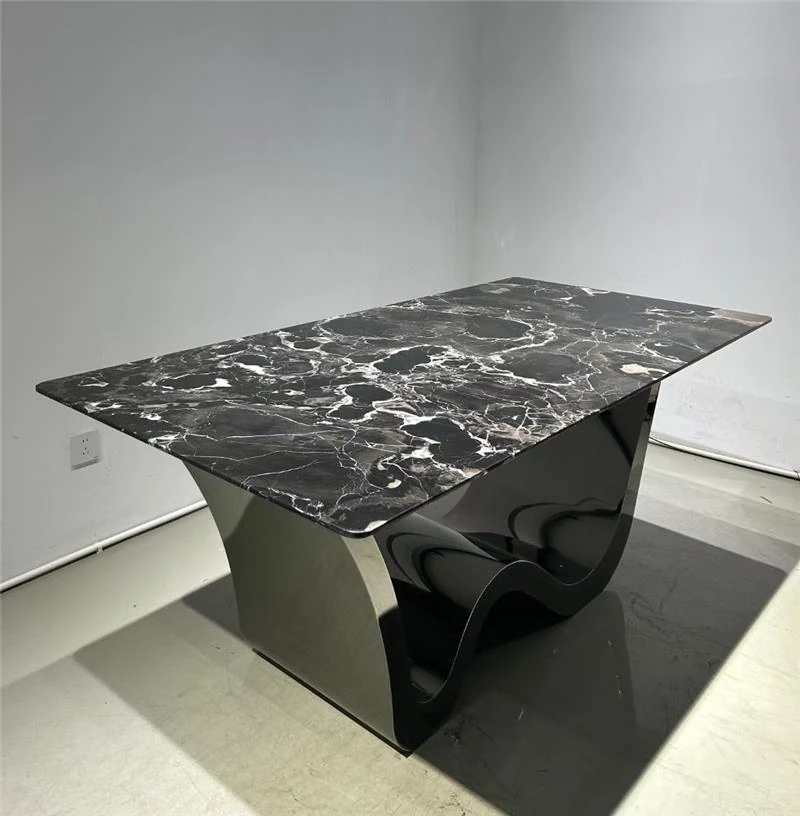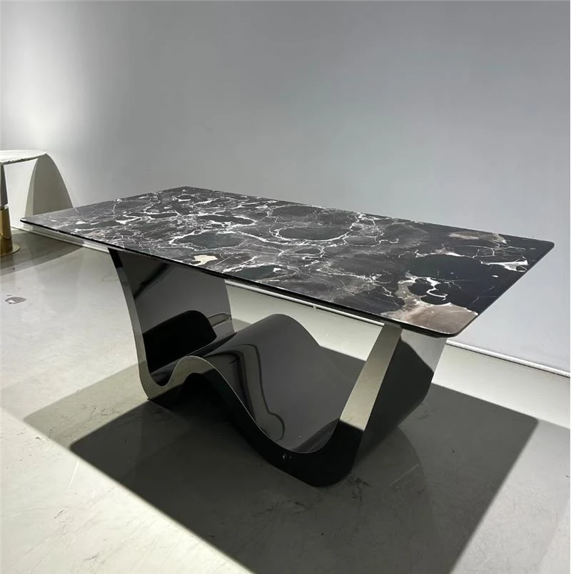 Elegant Italian-Inspired Dining Table and Chair Set for Hotels and Villas - Luxurious Rectangular Marble Dining Table for Spacious Homes - Perfect for Upscale Interiors