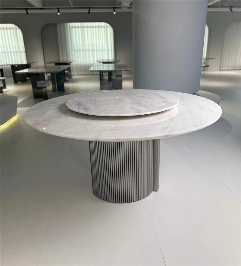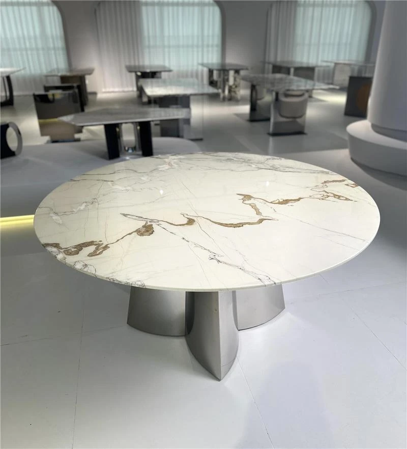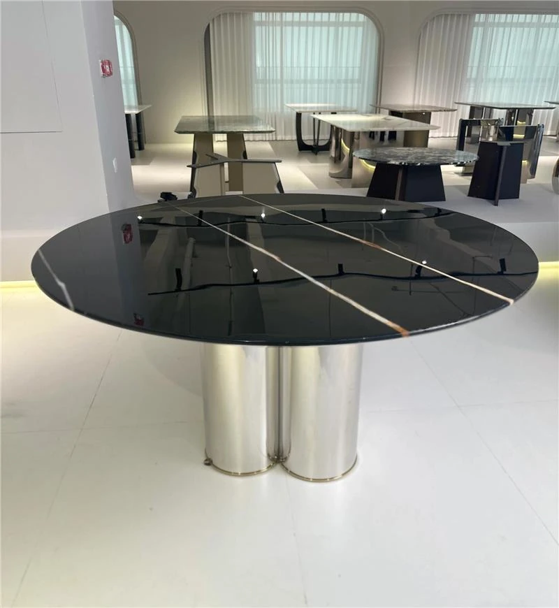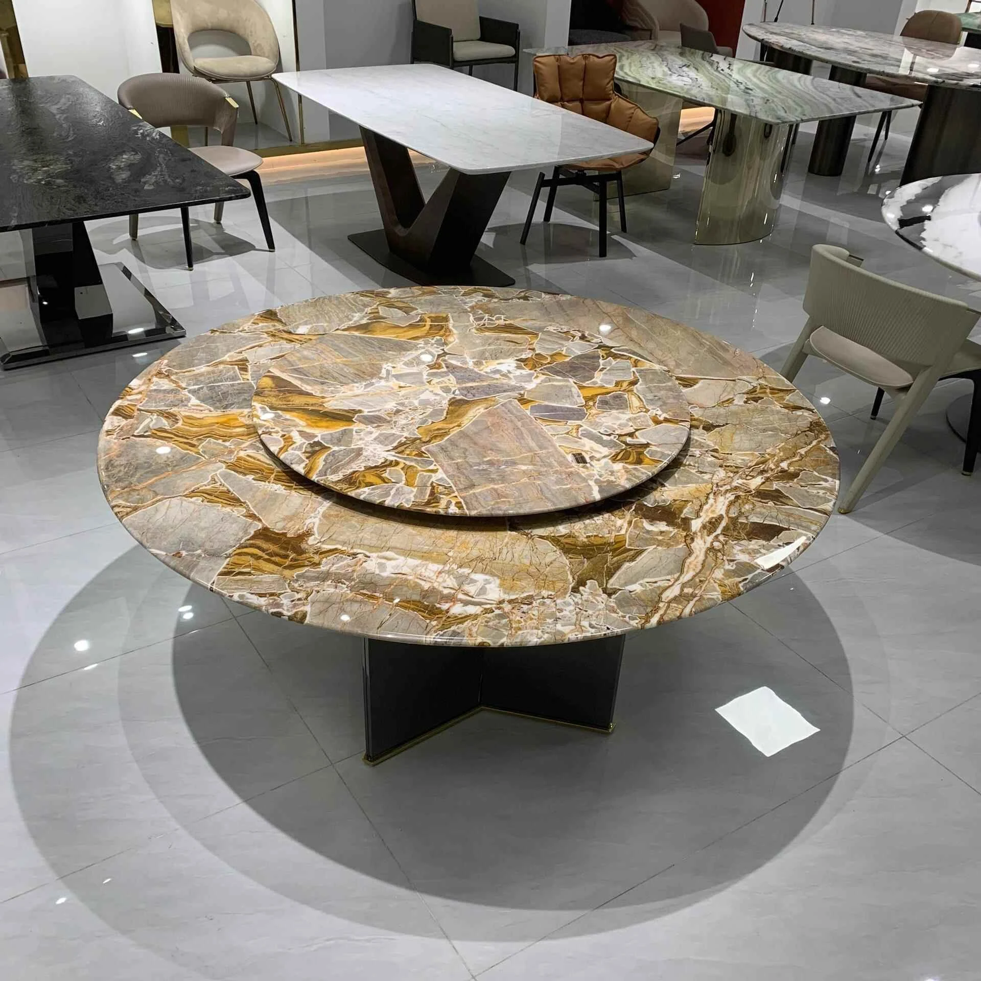 Elegant Italian-Inspired Marble Dining Table and Chair Set for Villas and Spacious Homes - Luxurious Round Dining Table and High-End Seating for Sophisticated Dining Experiences