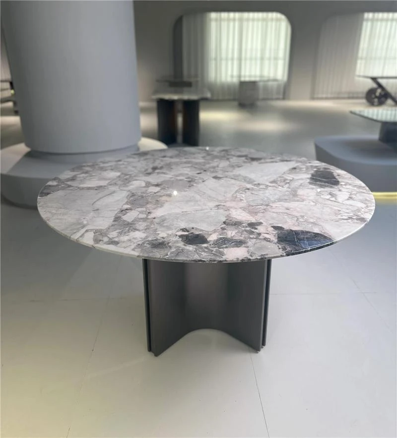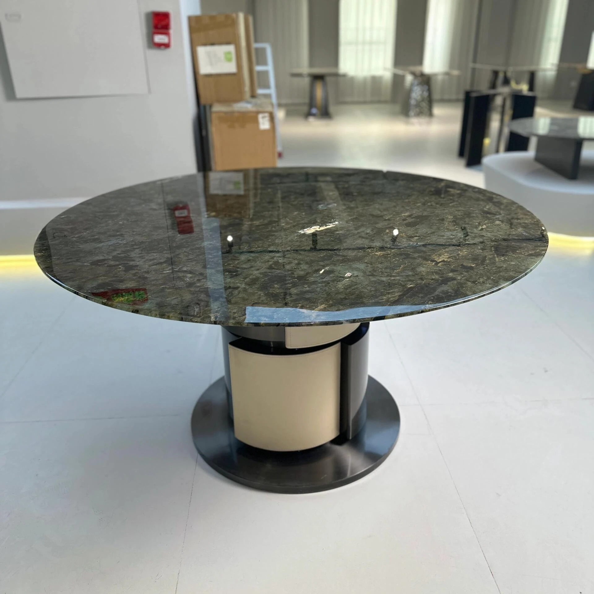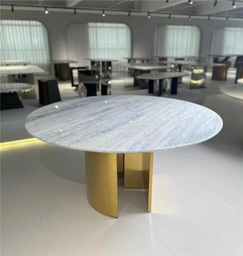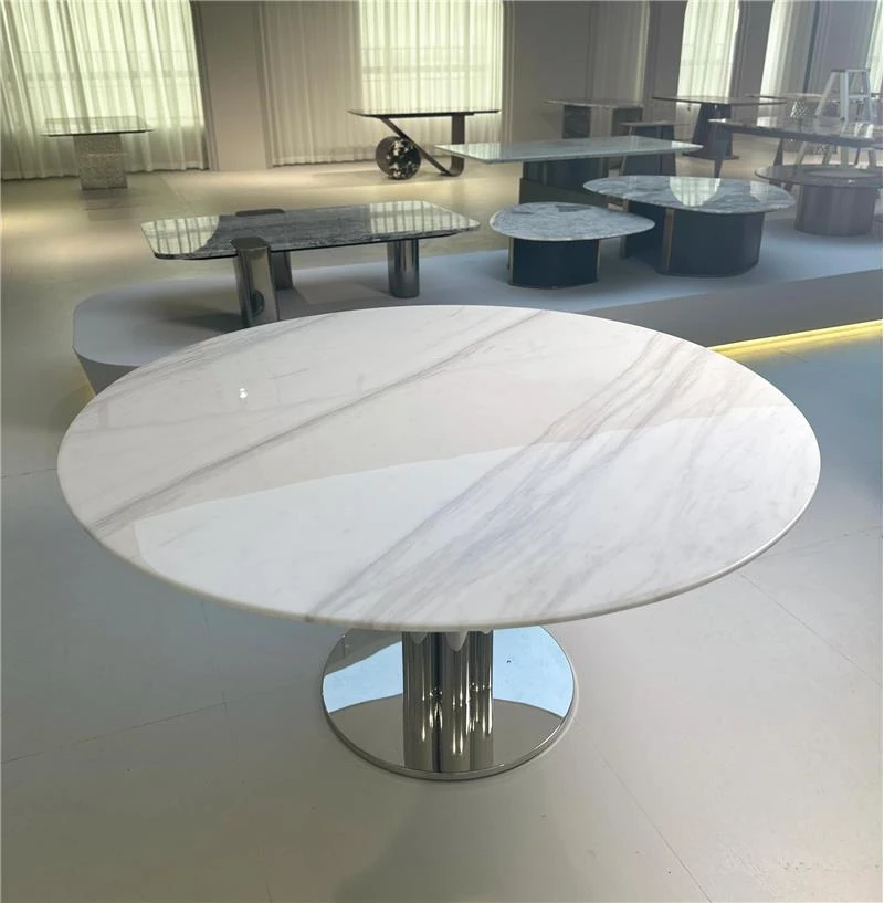 Elegant Italian-Inspired Marble Dining Table and Chair Set for Villas and Spacious Homes - Luxurious Round Dining Table and High-End Seating for Sophisticated Dining Experiences
