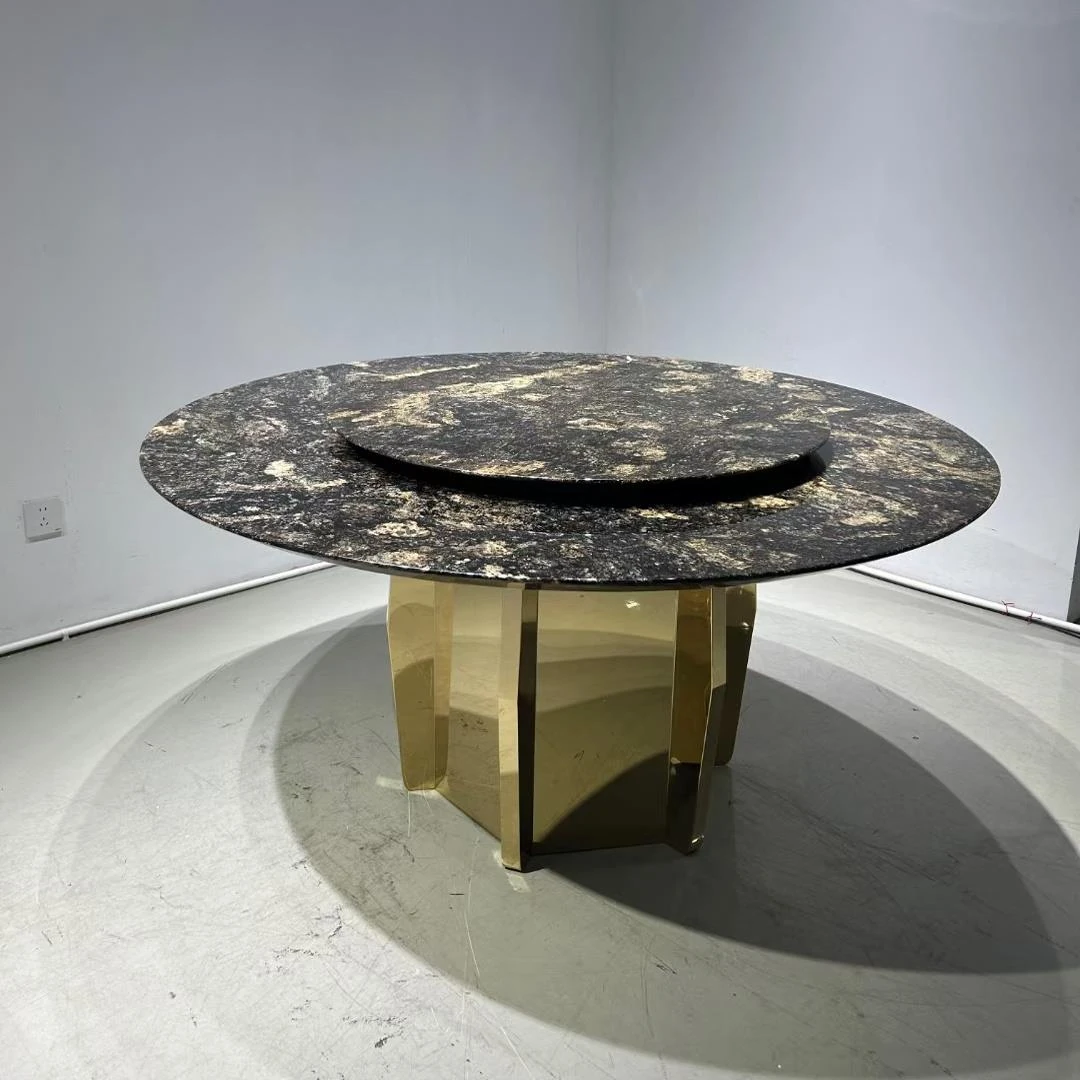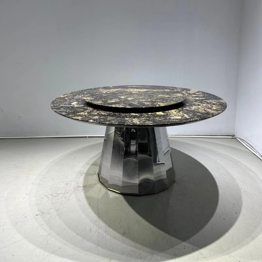 Elegant Italian-Style Dining Table and Chair Set for Hotels and Villas - Luxurious Round Marble Dining Table for Spacious Homes, Ideal for Upscale Dining Experiences