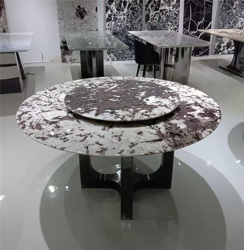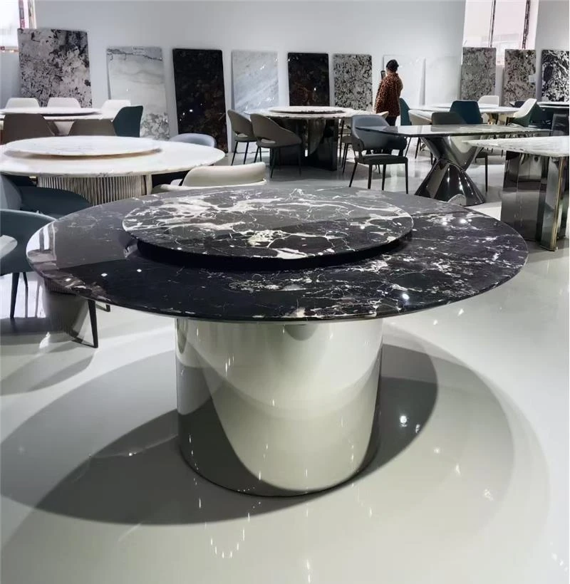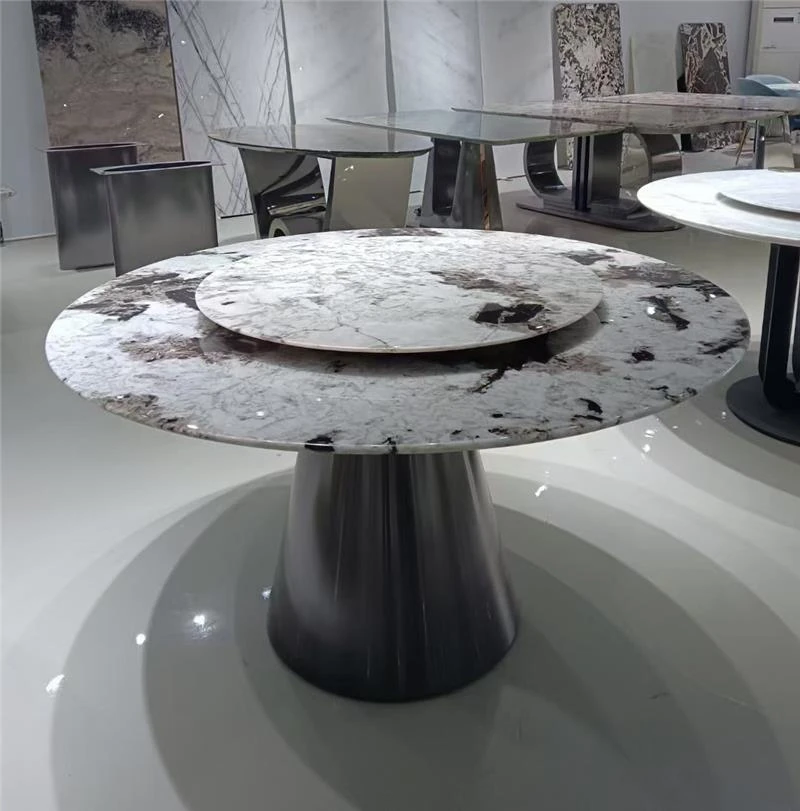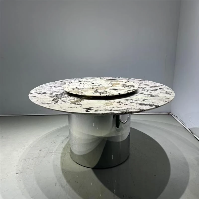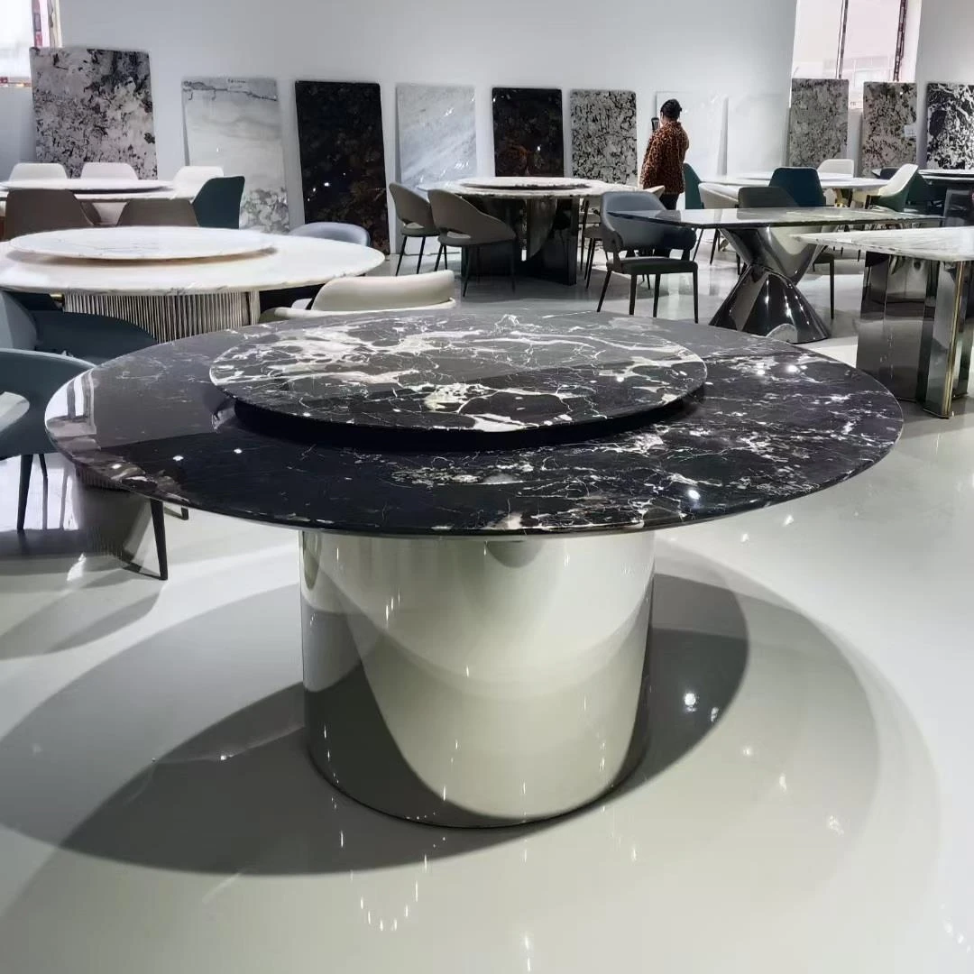 Elegant Natural Marble Dining Table - Luxurious Round Design for Modern Homes, Perfect for High-End Dining Experiences, Stylish and Minimalist Aesthetic. Ideal for Entertaining Guests and Family Gatherings.