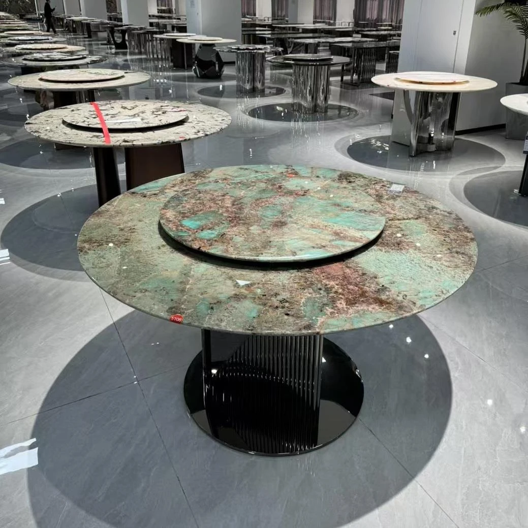 Elegant Natural Marble Round Dining Table Set - Luxurious Italian-Inspired Design for Villas and Spacious Homes - Perfect for Sophisticated Dining Experiences