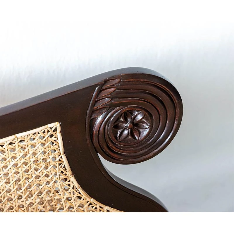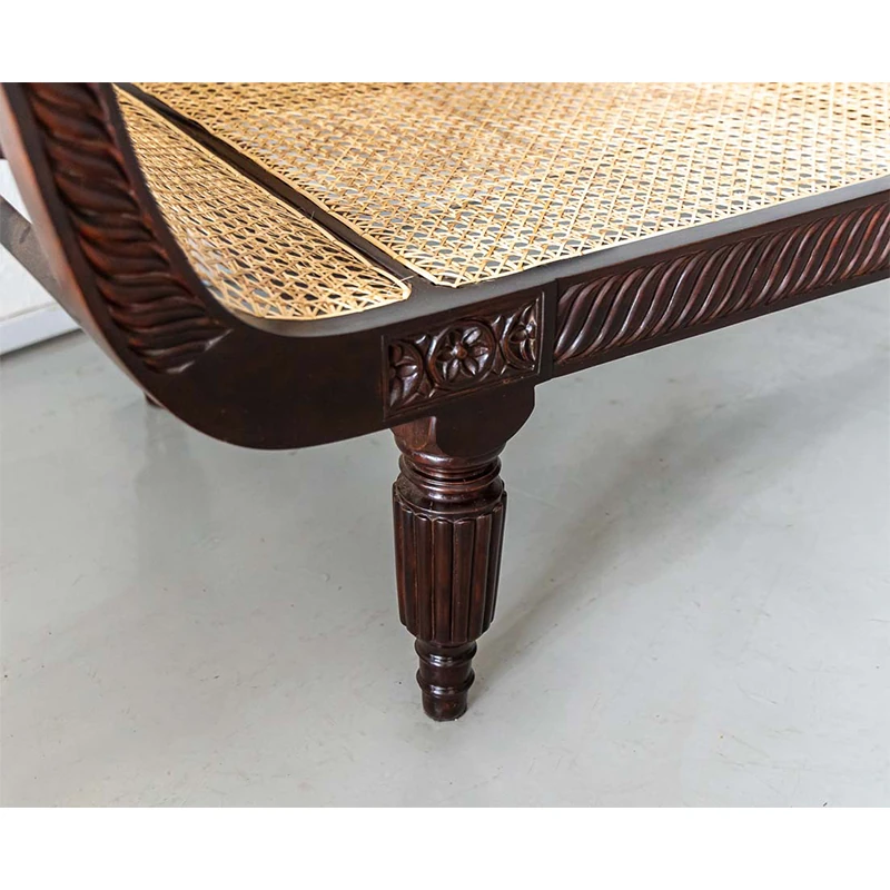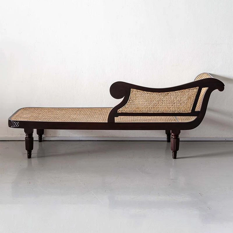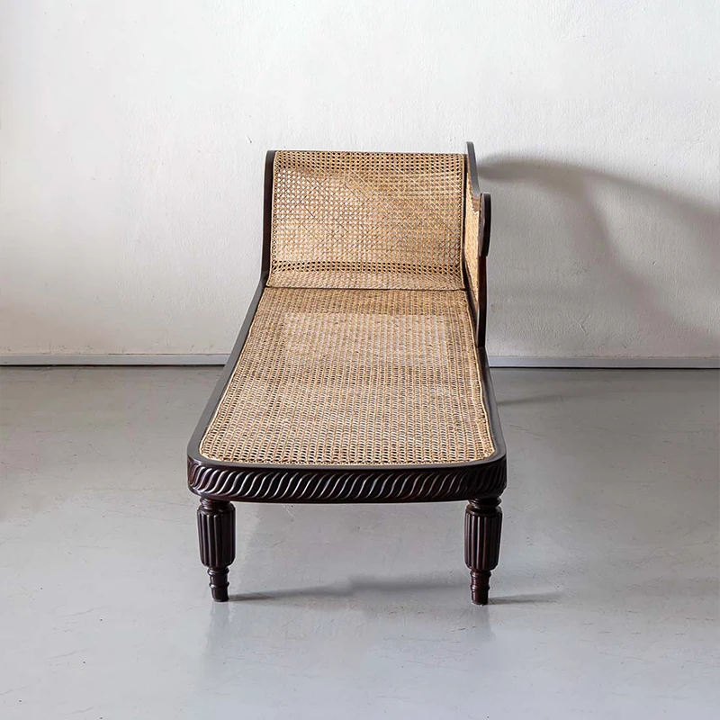 French Vintage Solid Wood Chaise Lounge - American Mid-Century Designer Style Daybed for Elegant Living Spaces