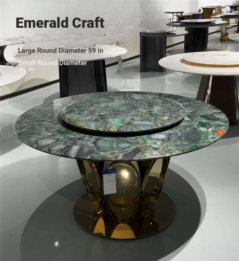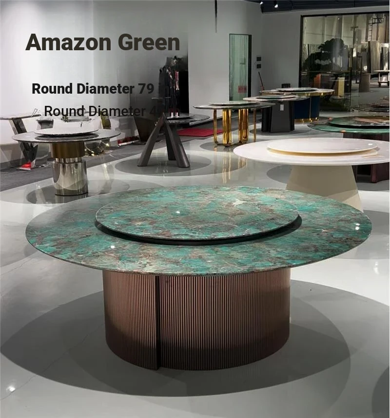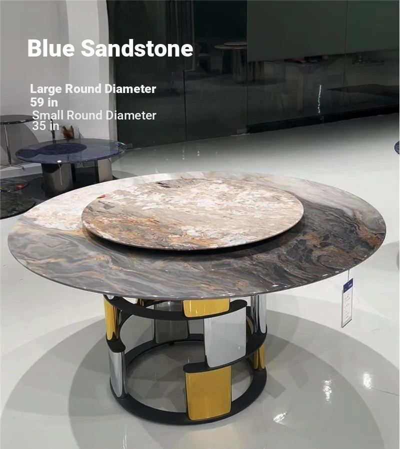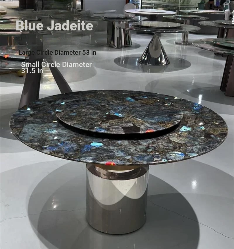 Imported Natural Marble Blue Jade Luxury Modern Minimalist Dining Table with Turntable - High-End Restaurant Table