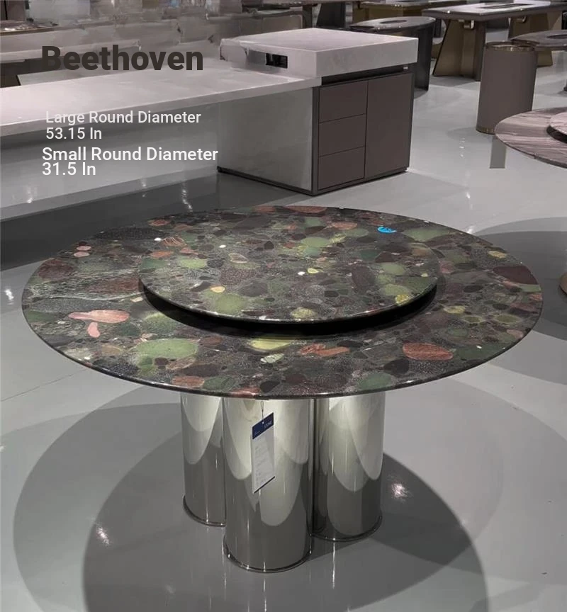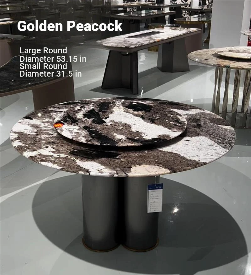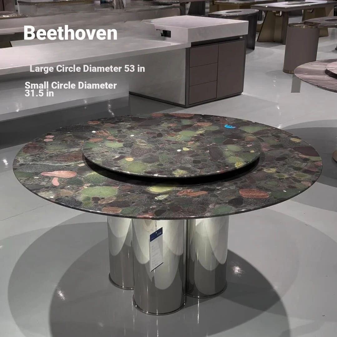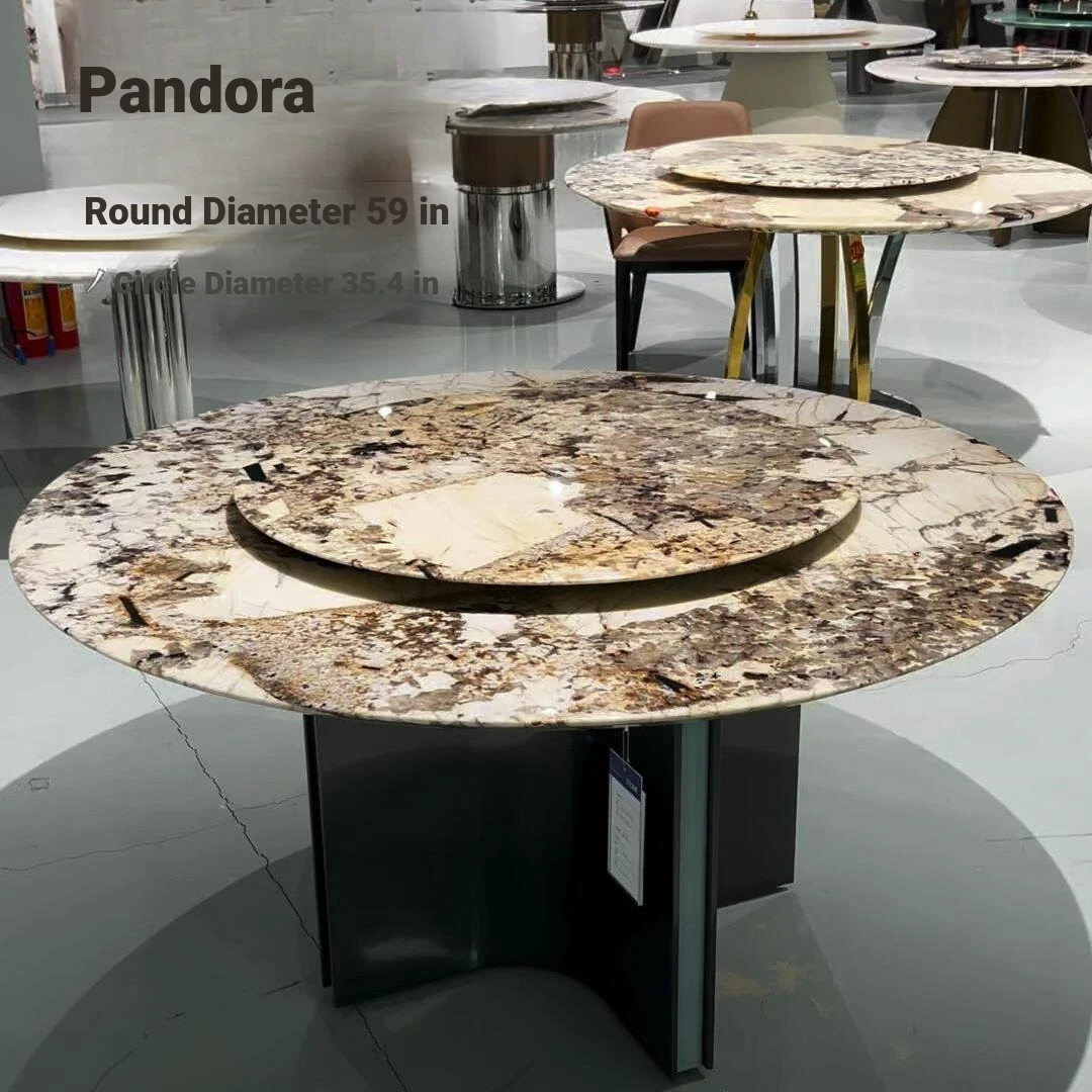 Imported Natural Marble Blue Jade Luxury Modern Minimalist Dining Table with Turntable - High-End Restaurant Table