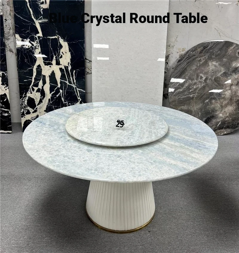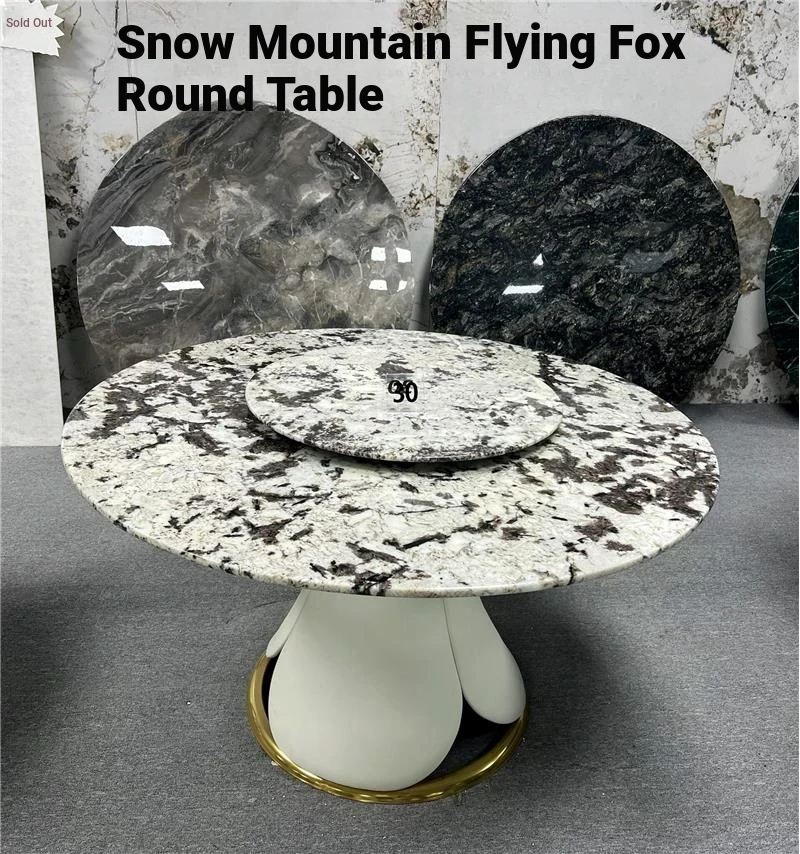 Imported Natural Marble Round Dining Table - Luxury Snow Mountain Flying Fox Design, Modern Minimalist Style for High-End Villas
