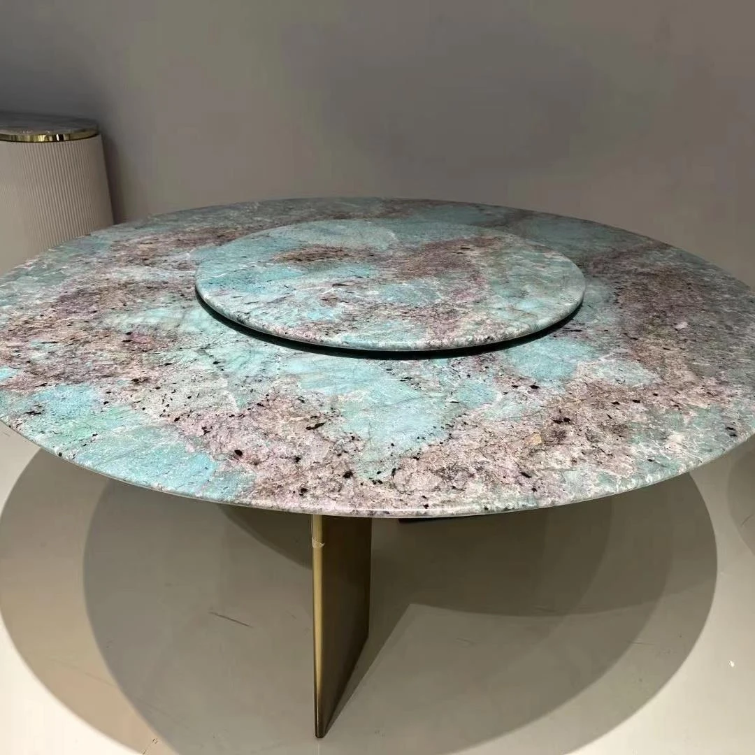Italian Luxury Marble Dining Table and Chair Set - Modern Minimalist Round Table with Lazy Susan for Home Use - Elegant Design for Upscale Dining Experience