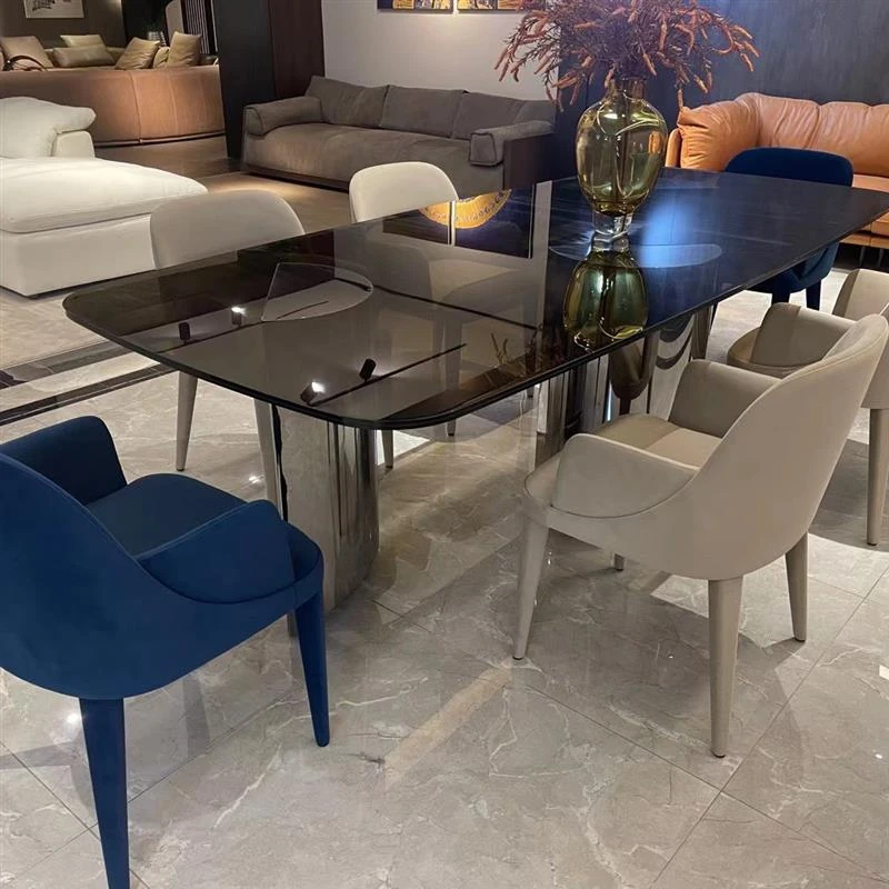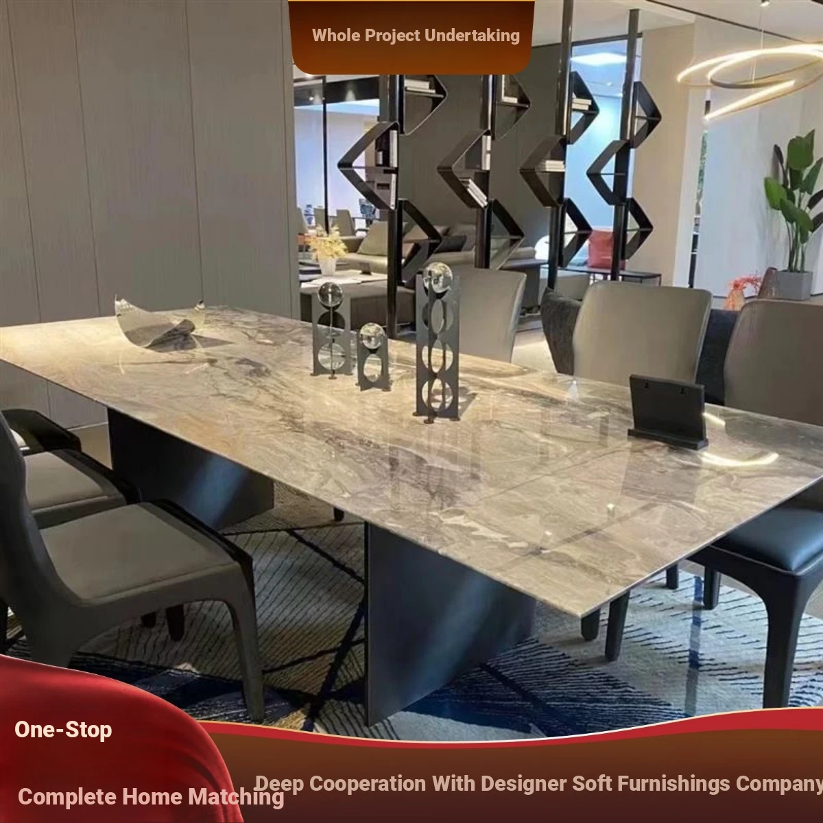 Italian Luxury Natural Marble Long Dining Table - Modern Minimalist High-End Stone Table for Villas and Luxury Apartments