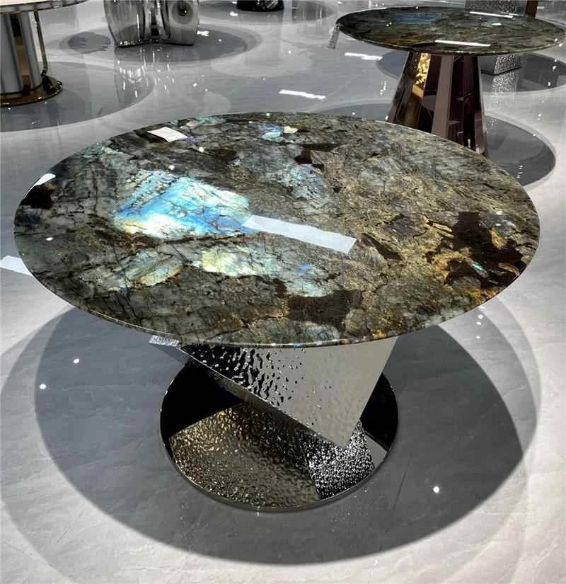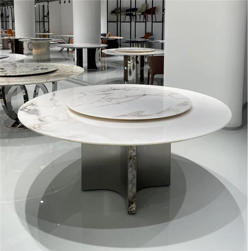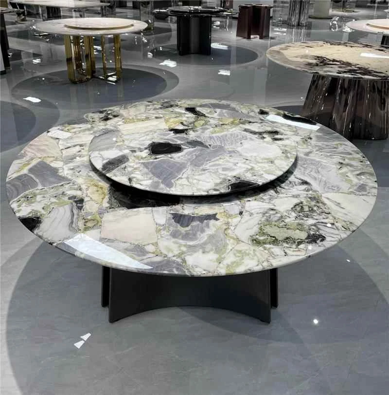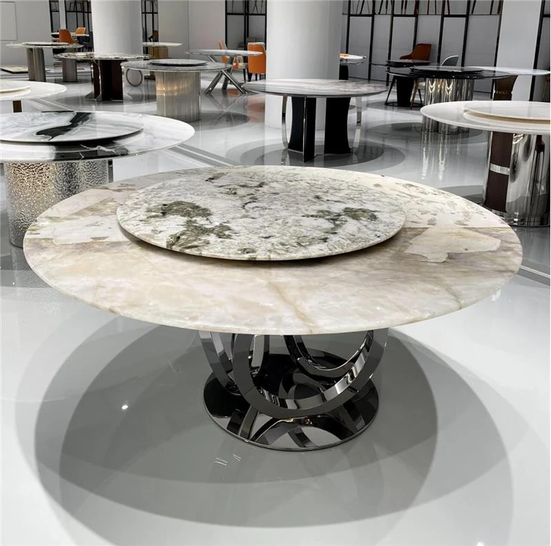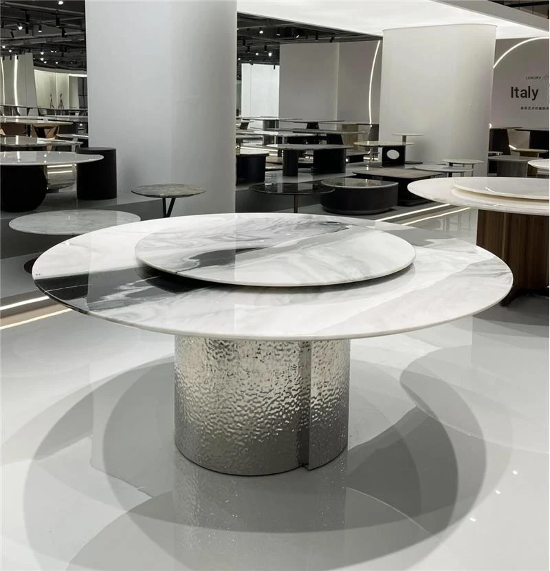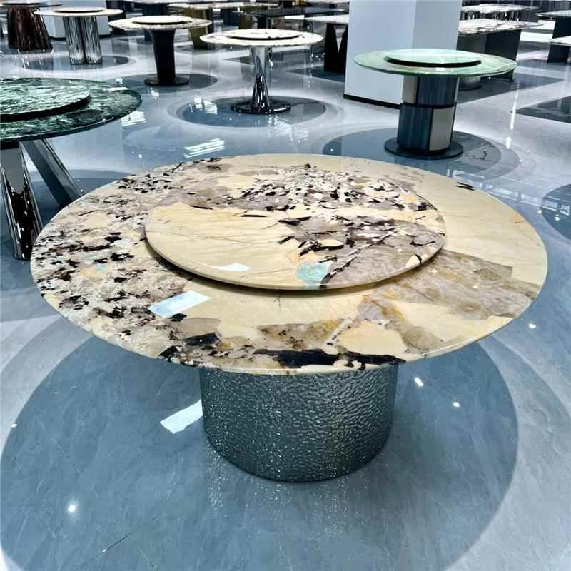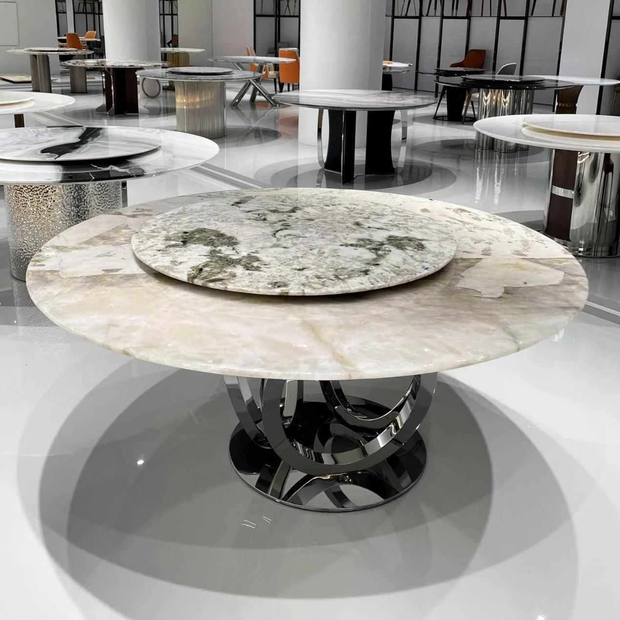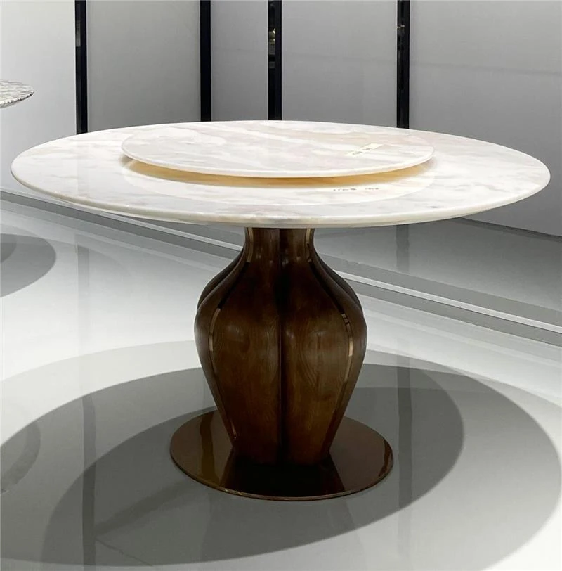 Italian Luxury Round Dining Table with Natural Marble Top for 10 People - Elegant Villa Style, Perfect for Any Dining Room, Includes Matching Chairs