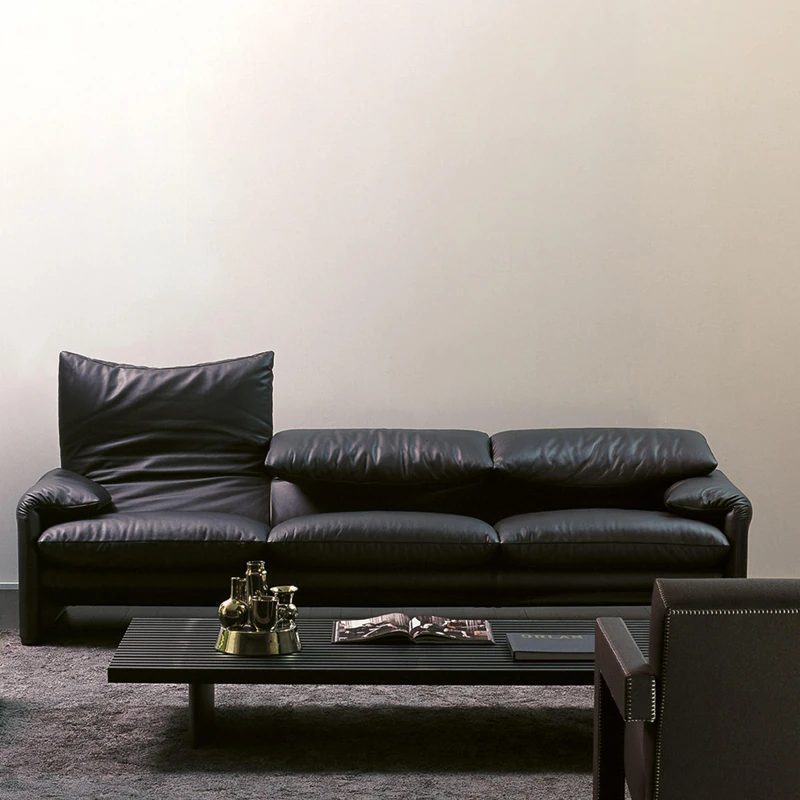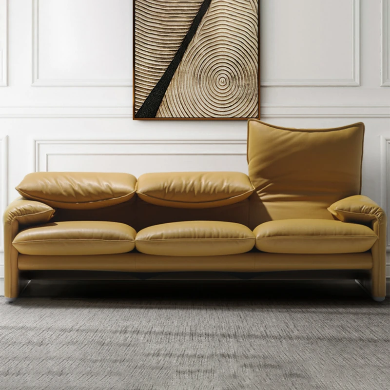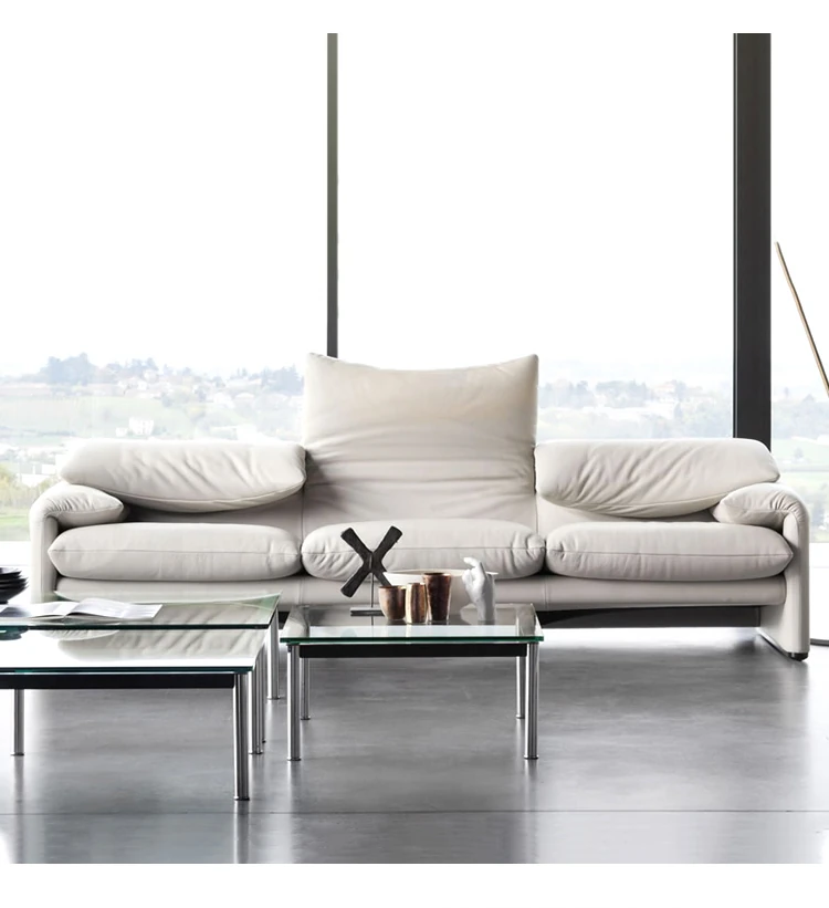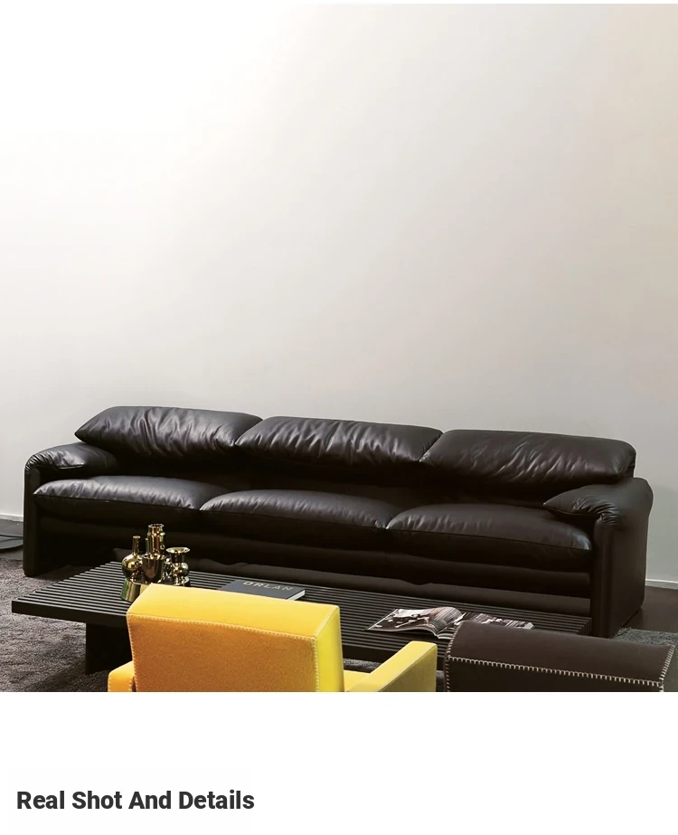 Italian Minimalist Cassina Imported Top-Grain Leather Sofa - Bauhaus-Inspired, Modern Upholstered Couch for Living Room and Home Use, Stylish and Comfortable Design
