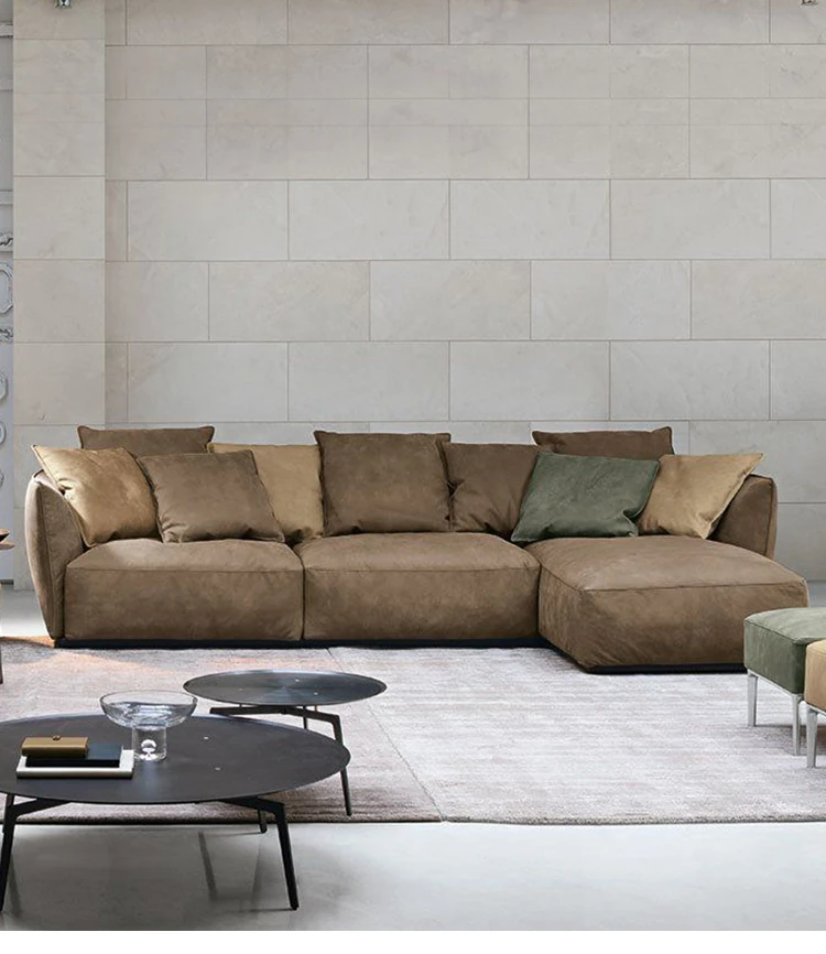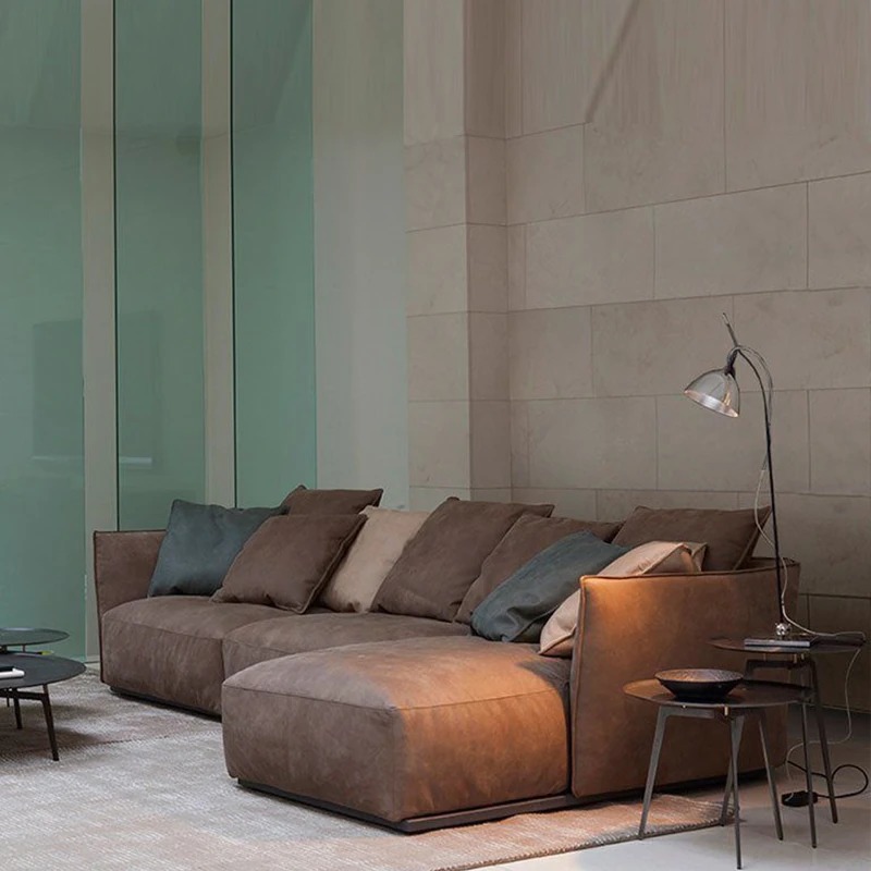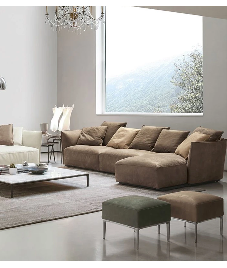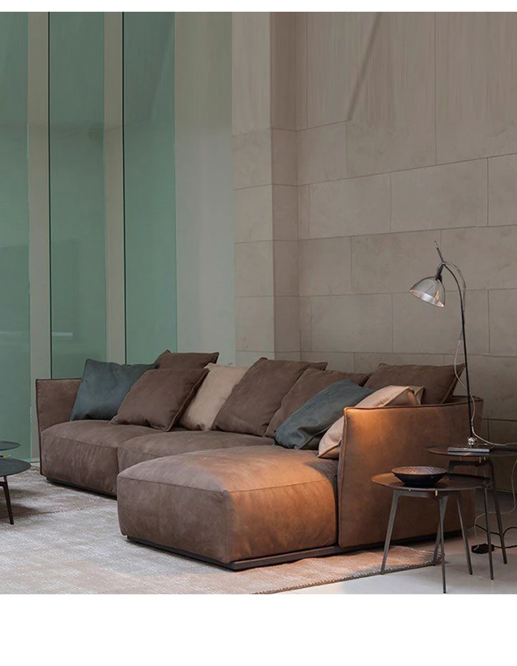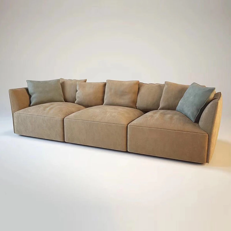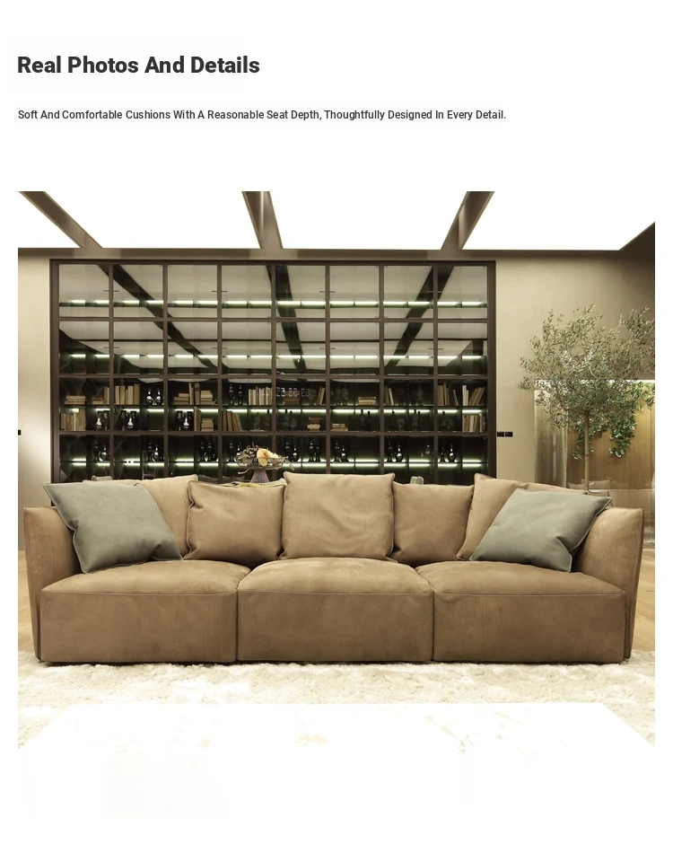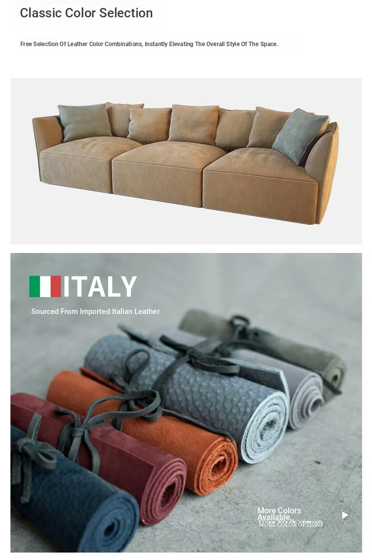 Italian Minimalist Suede Leather Sofa - Premium Top-Grain Cowhide 3-Seater Modular Design for Small Living Rooms - Stylish and Space-Saving Furniture