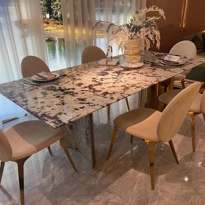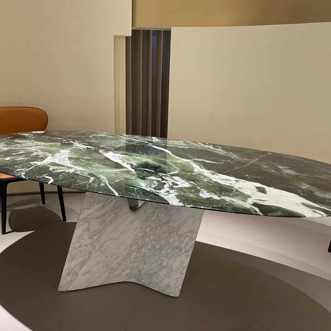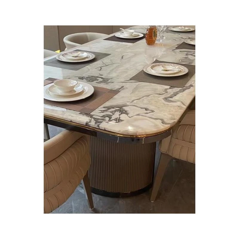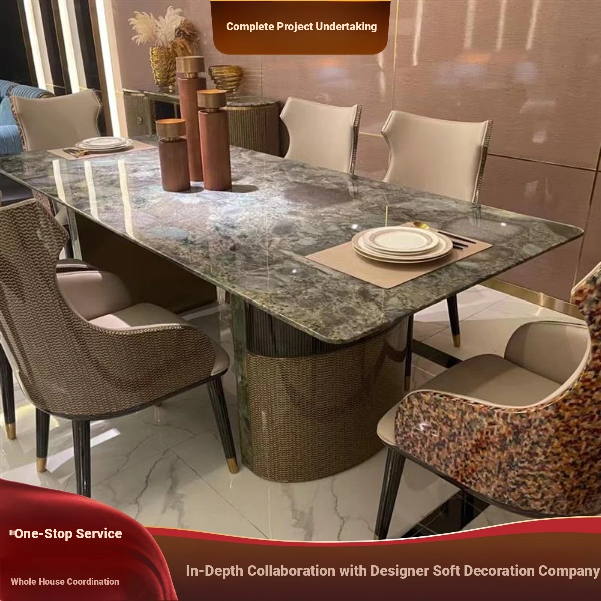 Italian Natural Marble Long Dining Table Set for Luxury Villas and Spacious Apartments - Premium Designer Furniture for Elegant Homes