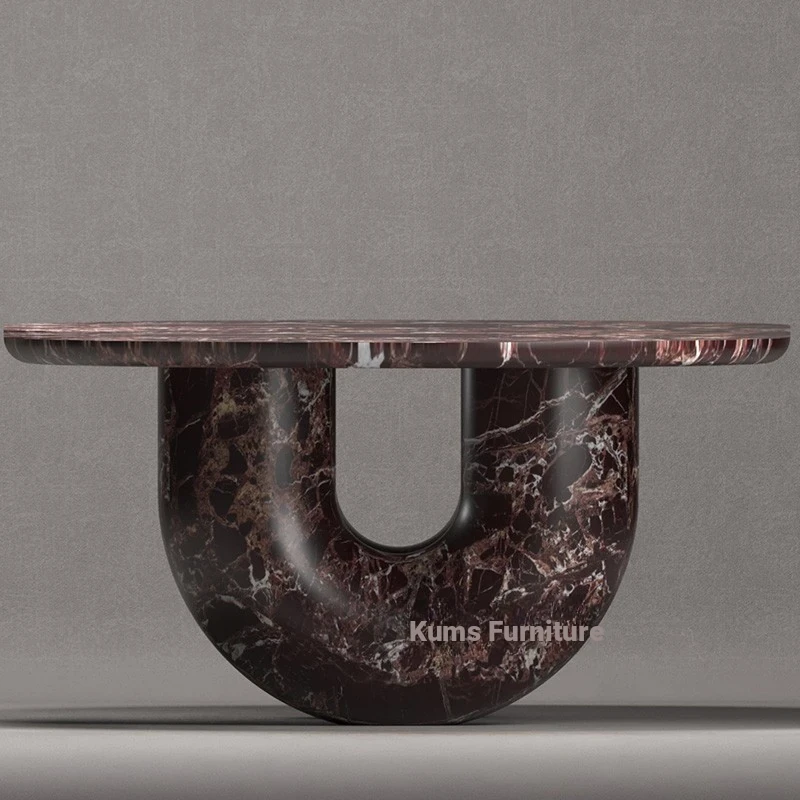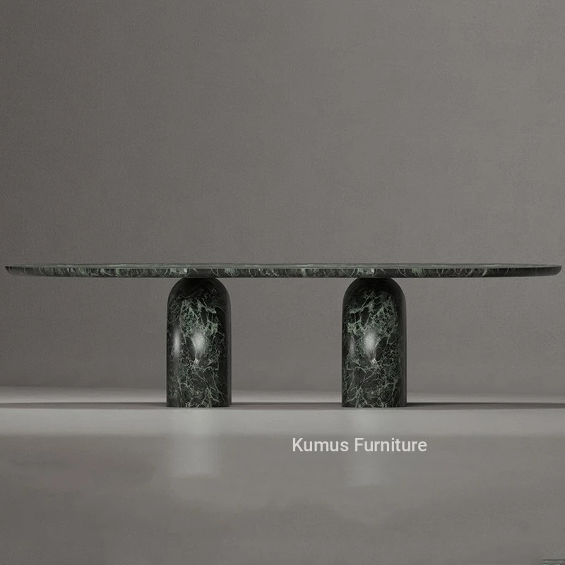 Kumus Premium Italian Minimalist Natural Marble Dining Table - Designer Edition for Villas and Homes, Perfect for Luxurious Living Rooms and Dining Spaces