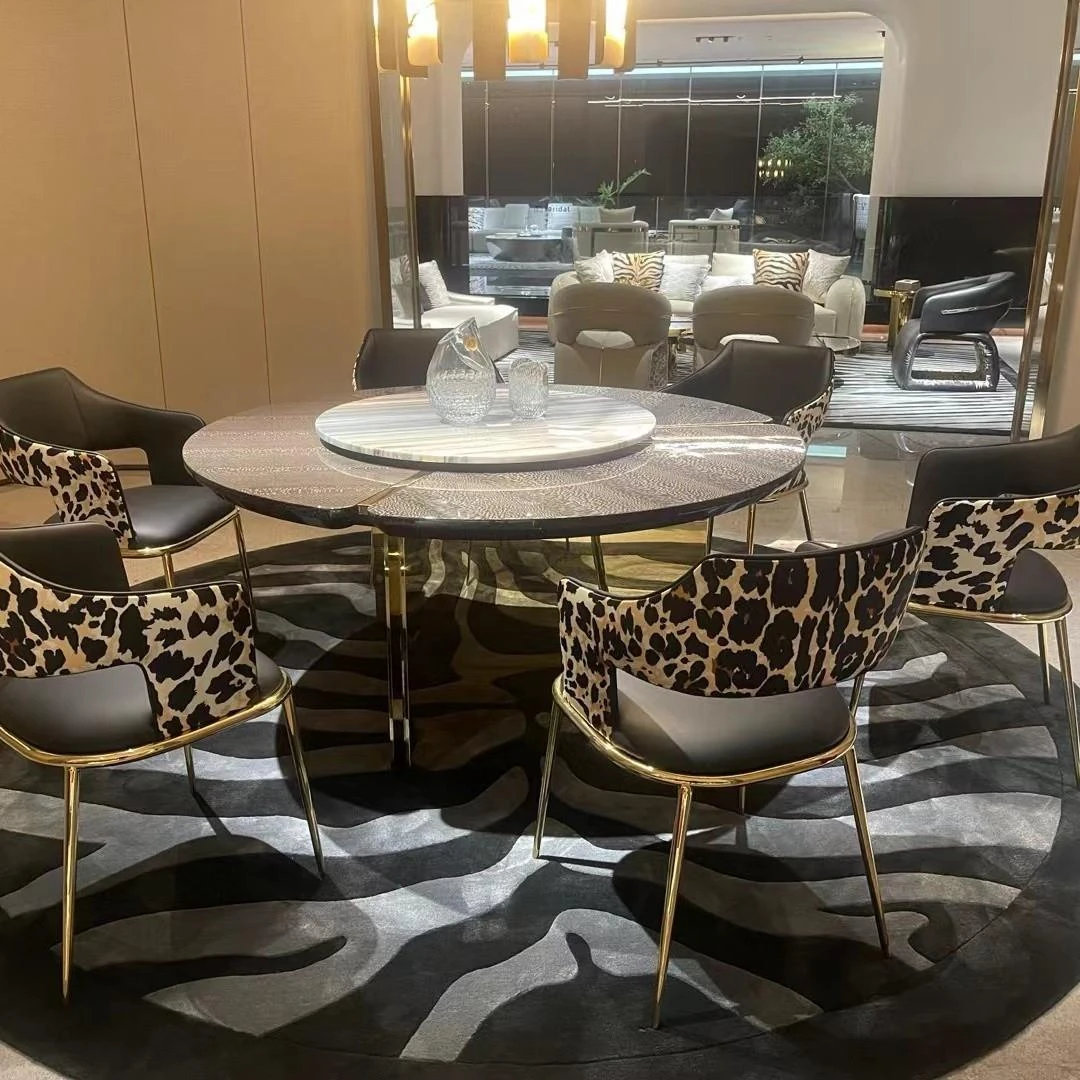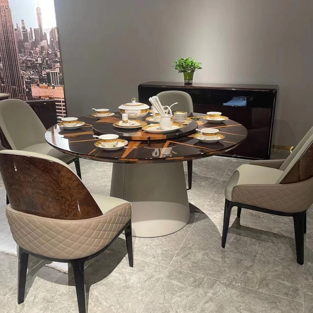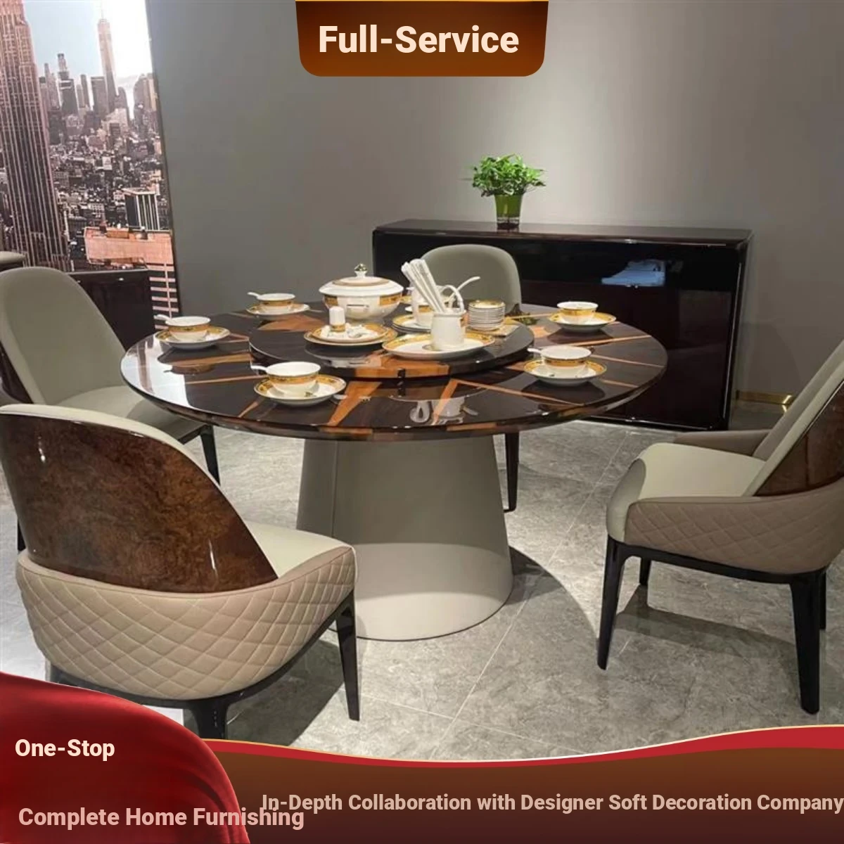 Luxurious Italian High-End Natural Marble Round Dining Table for Villas and Spacious Homes - Designer Furniture for Elegant Living