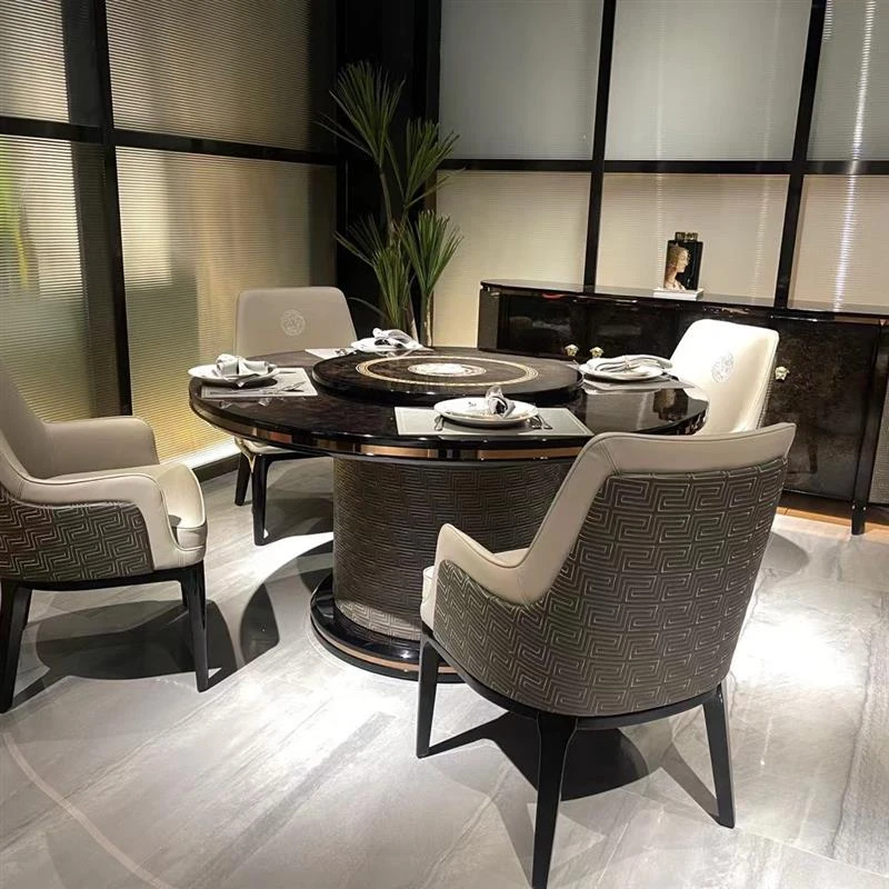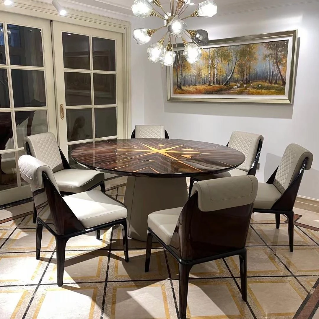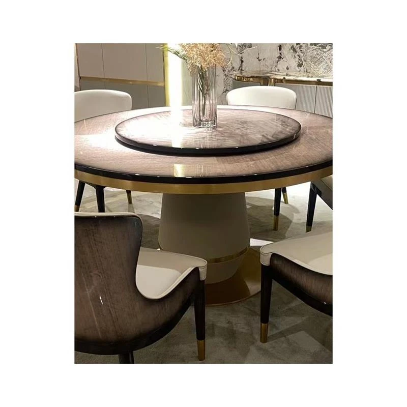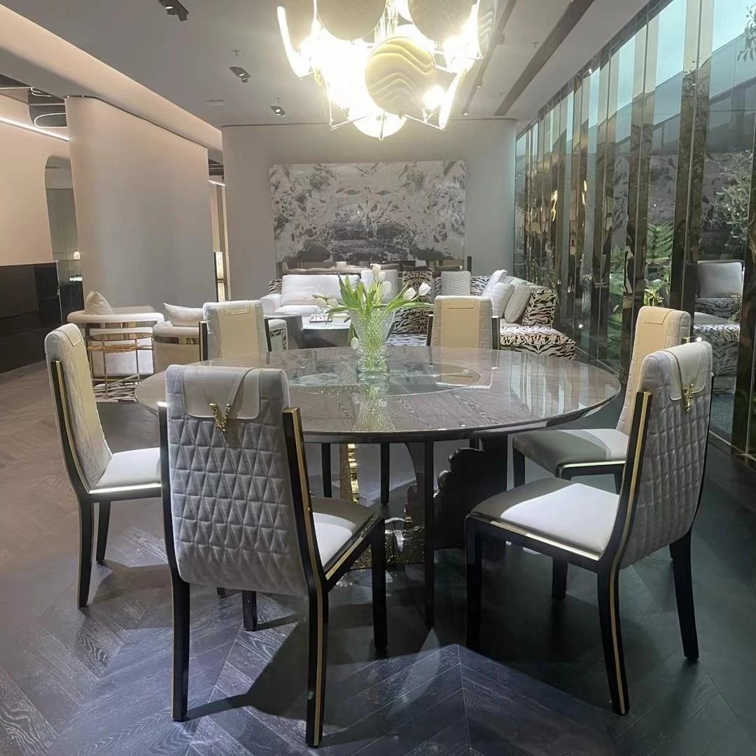 Luxurious Italian High-End Natural Marble Round Dining Table for Villas and Spacious Homes - Designer Furniture for Elegant Living