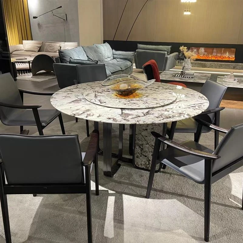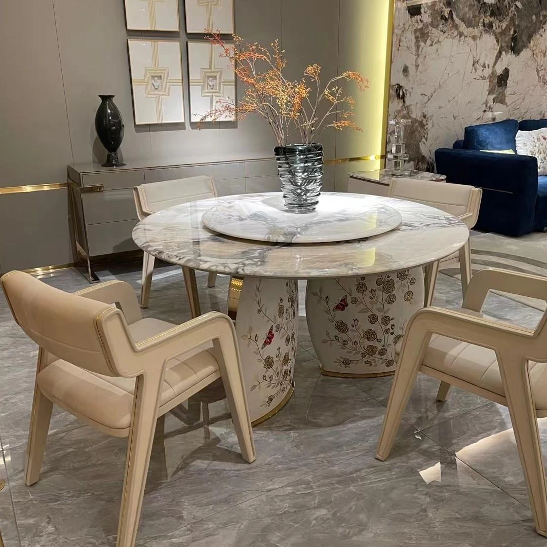 Luxury Designer Italian Natural Marble Round Table for Home - High-End Modern Furniture for Villas and Spacious Apartments