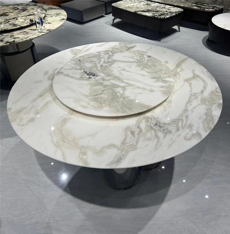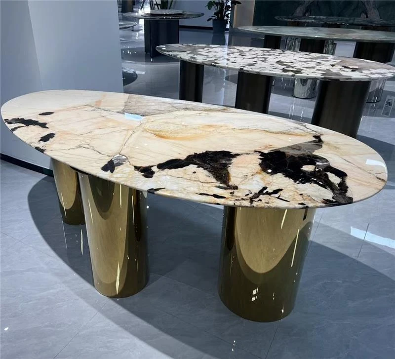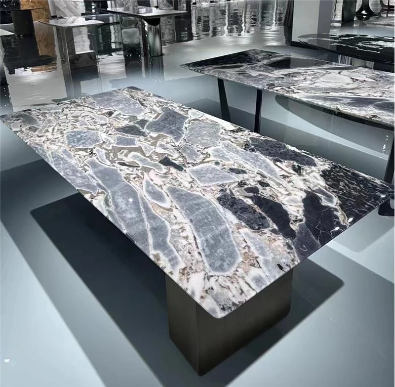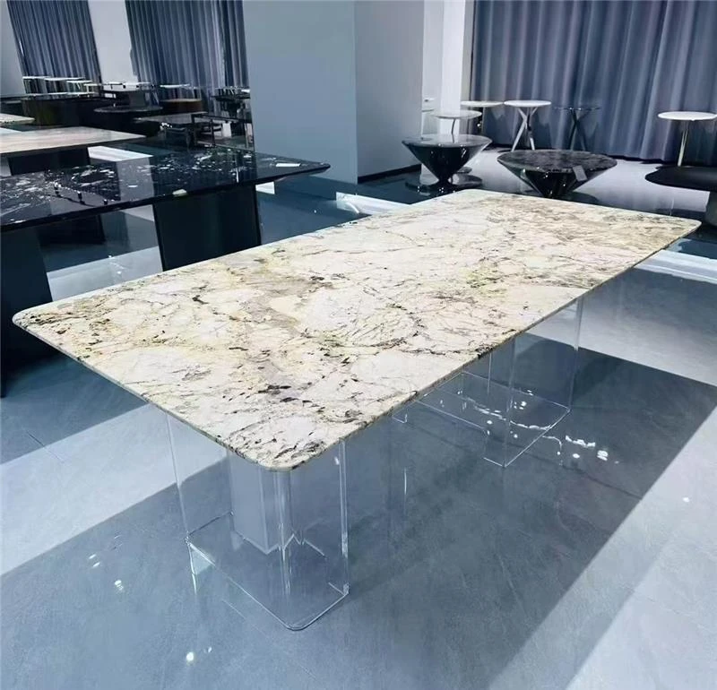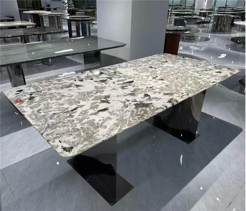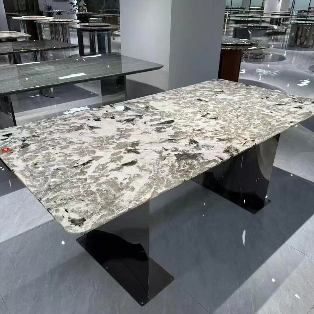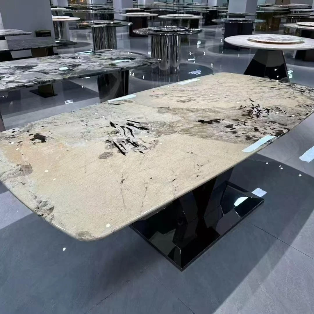 Luxury Imported Marble Dining Table and Chair Set - Natural Stone Long Table for Villas and Homes, Modern Light Luxury Design for an Elegant Dining Experience