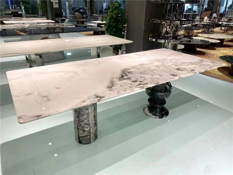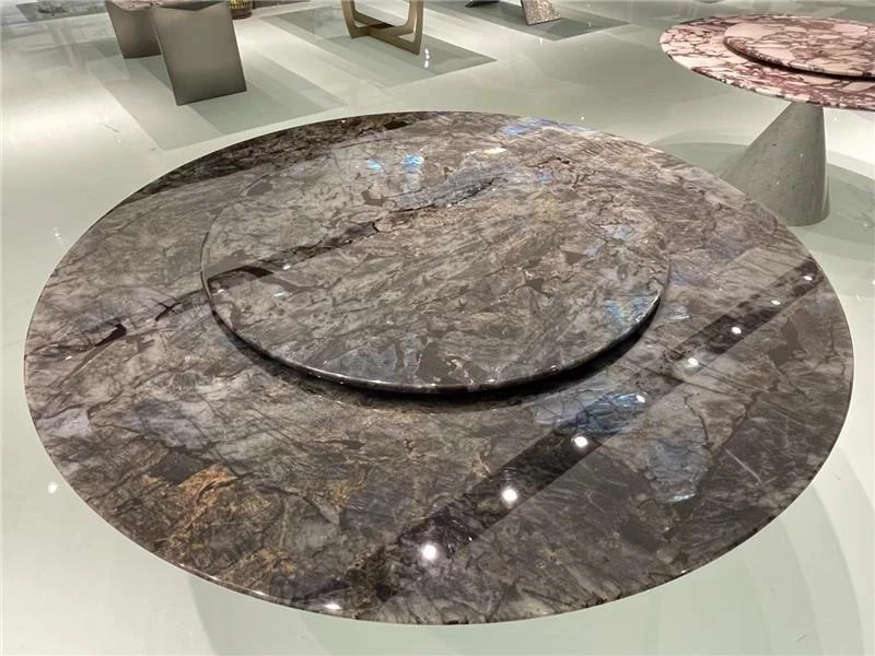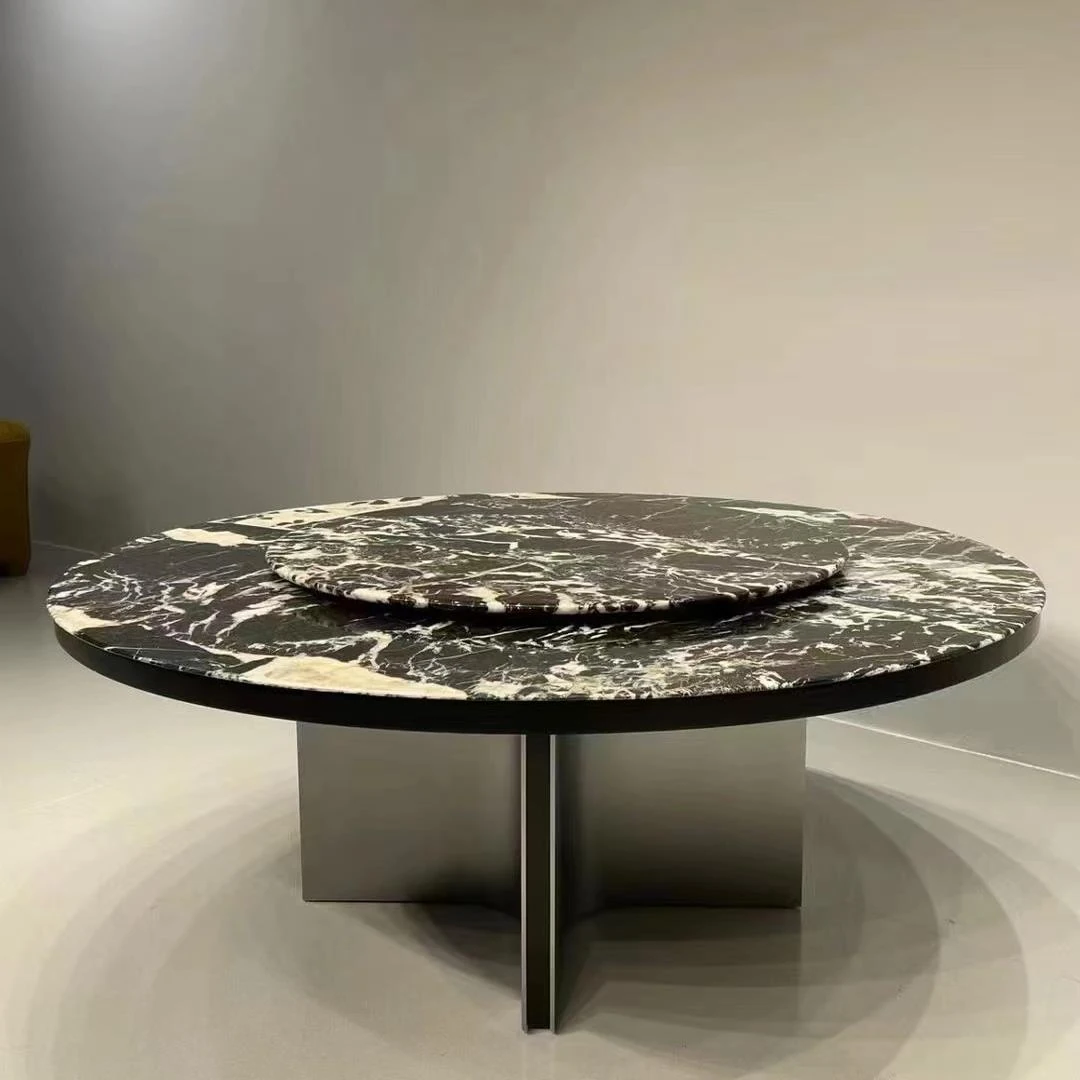 Luxury Italian Minimalist Natural Marble Dining Table - Elegant Round Design with Lazy Susan for High-End Hotels and Homes