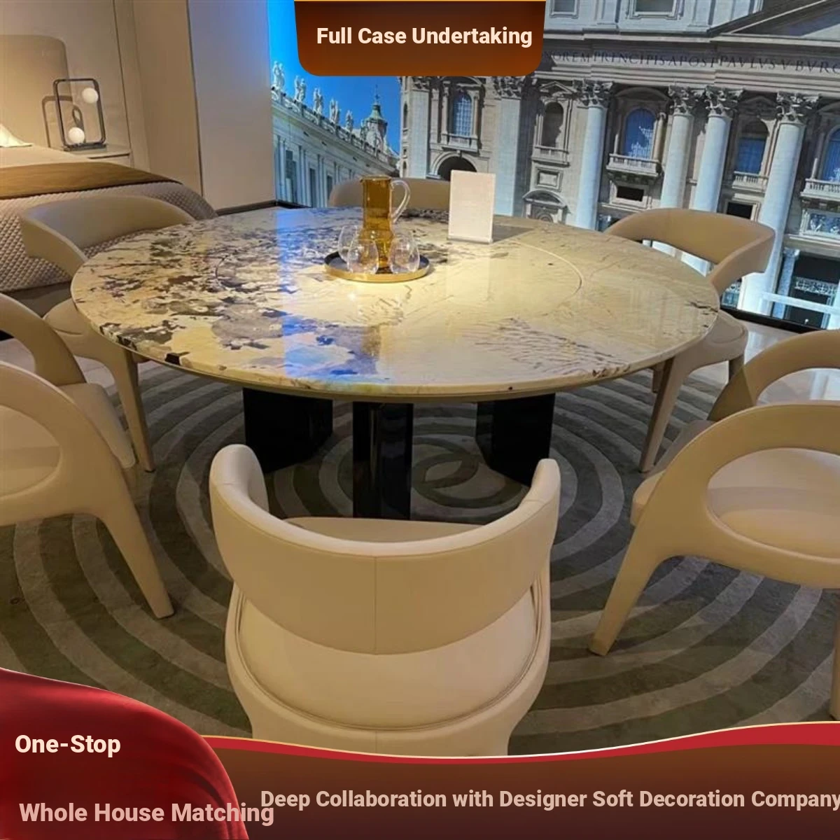 Luxury Italian Natural Marble Round Table - Modern Minimalist High-End Dining Table for Villas and Penthouses, Perfect for Stylish Homes