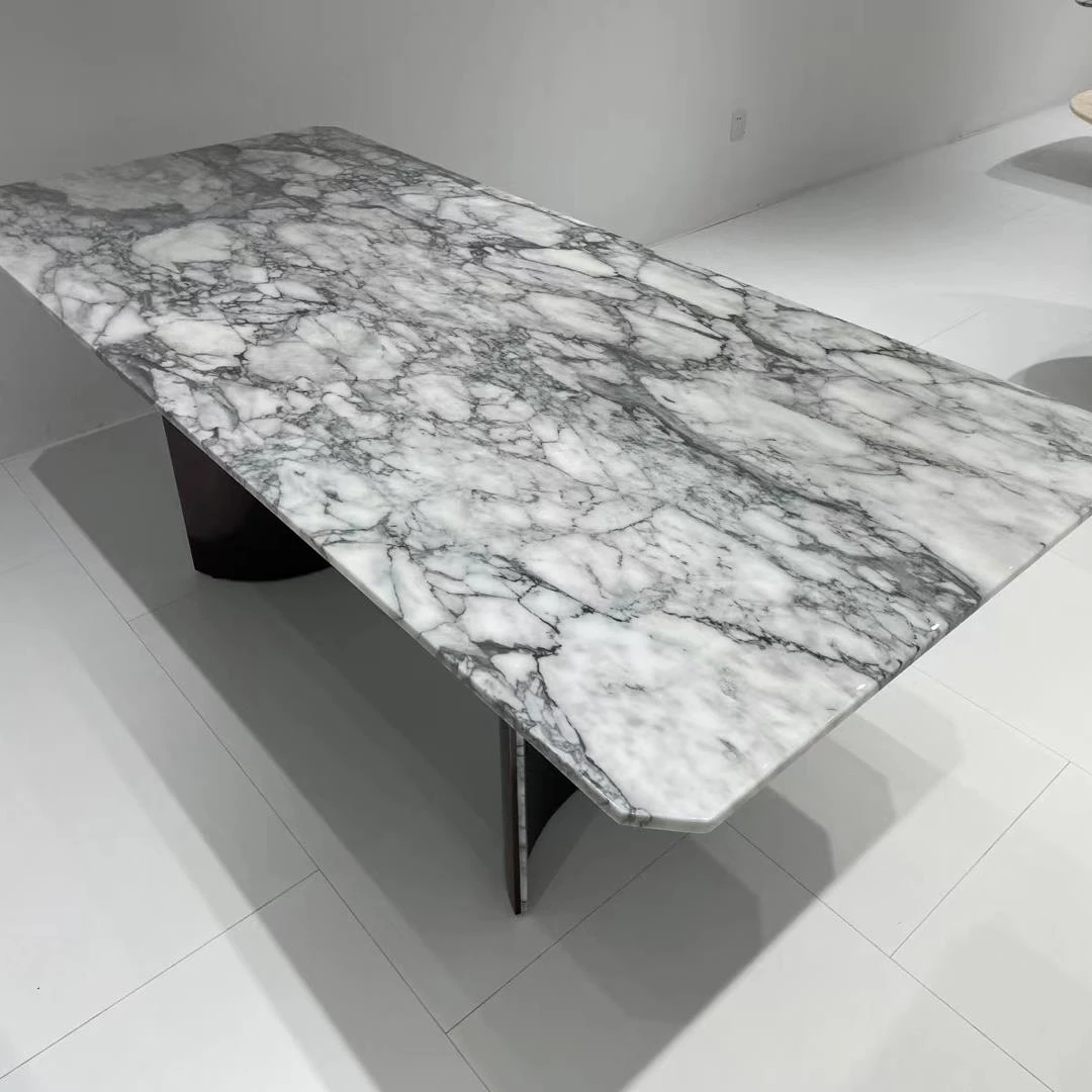 Luxury Italian-Inspired Natural Marble Dining Table - Elegant Round Design with Rotating Tray for Upscale Hotels and Homes - Modern Minimalist Style