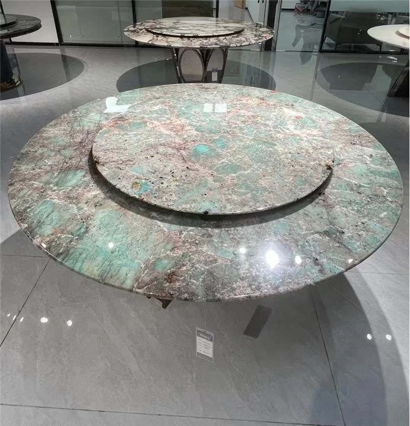 Luxury Natural Marble Dining Table for Home – Elegant Italian Design for High-End Villas and Spacious Homes, Featuring a Rotating Centerpiece