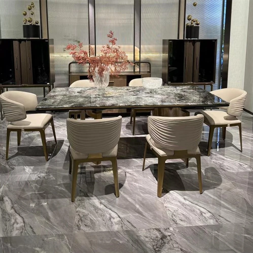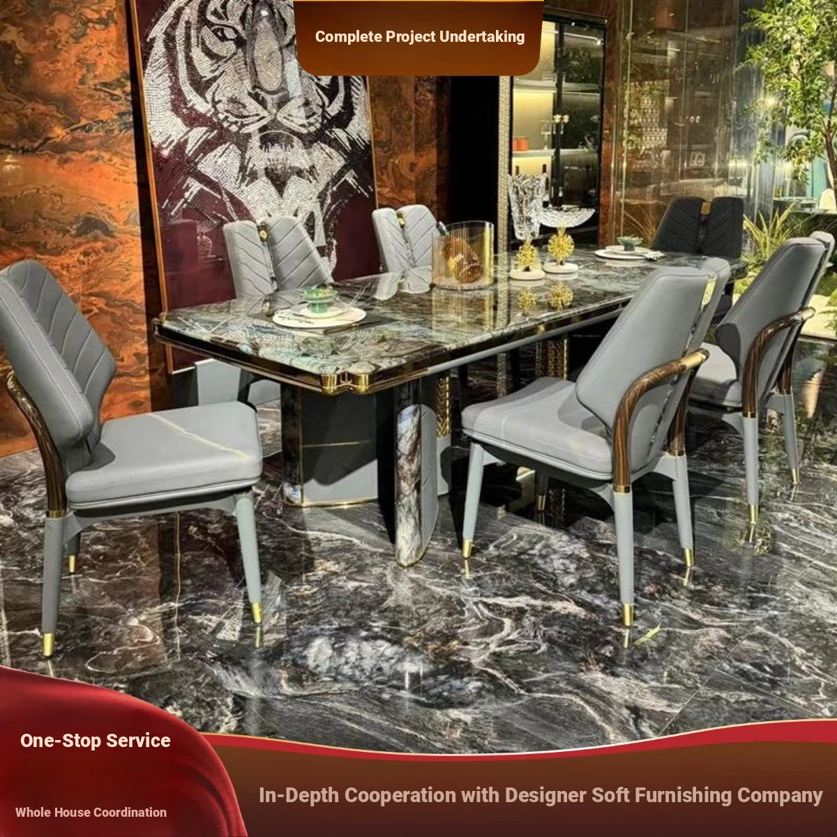 Luxury Natural Marble Dining Table - Modern Minimalist Design for Villas and Spacious Homes, Perfect for Elegant Dining Experiences
