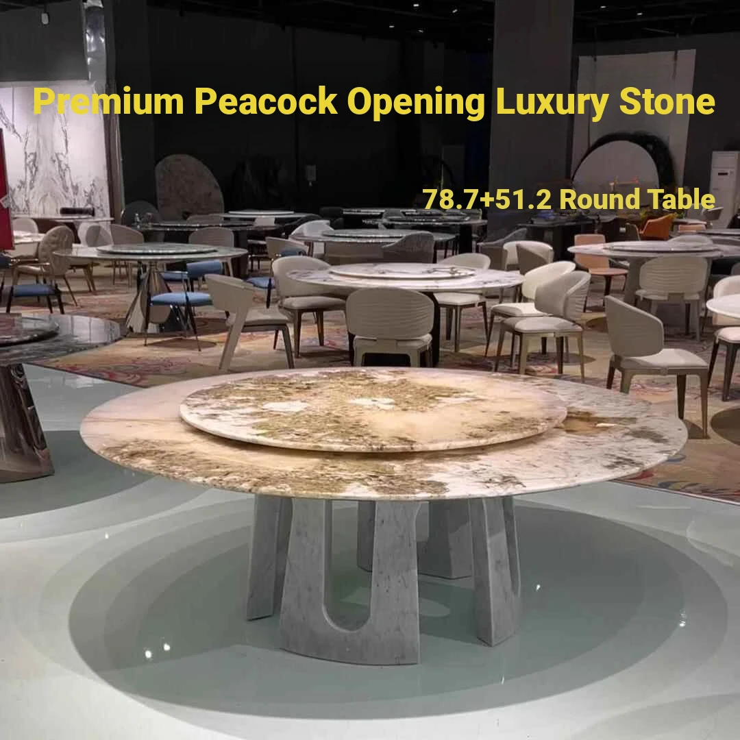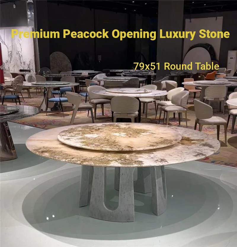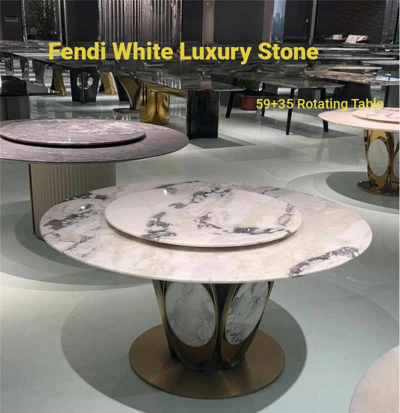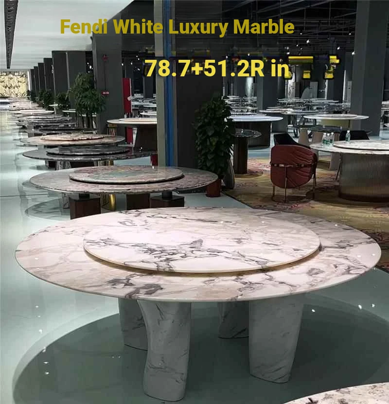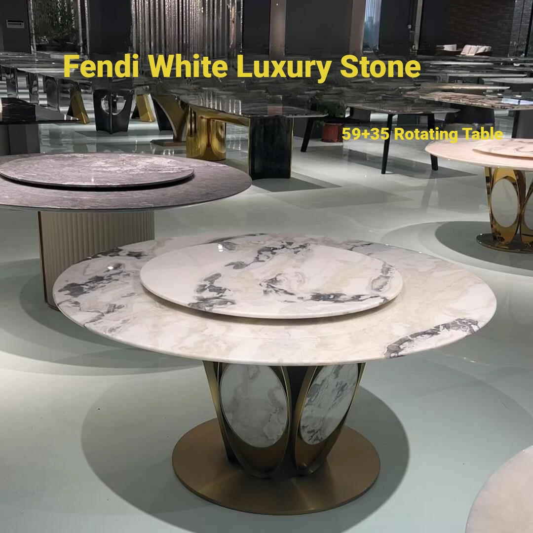 Luxury Natural Marble Round Dining Table - Elegant Fendi White Design for Home and Villa, Perfect for Spacious Dining Rooms