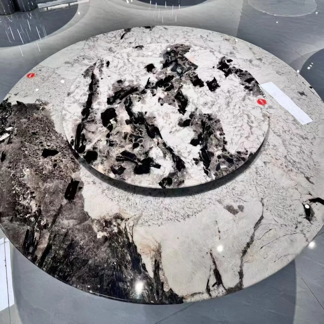 Luxury Natural Marble Round Dining Table for Home, Villa, and Hotel - Elegant Design for Spacious Living Spaces and Upscale Interiors