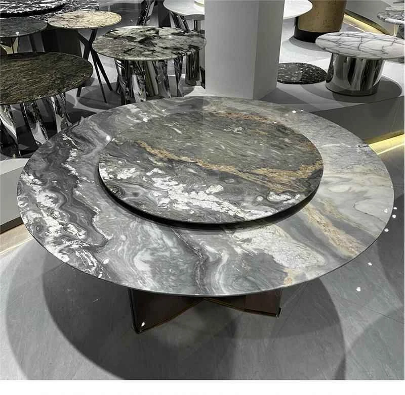 Luxury Natural Marble Round Dining Table for Hotels and High-End Residences - Modern Style for Living Rooms and Upscale Lounges, Perfect for Elegant Gatherings and Chic Entertaining