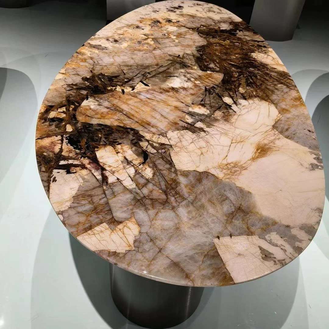 Luxury Natural Marble Round Dining Table for Hotels and Mansions - Modern High-End Soft Furnishing for Living Rooms, Perfect for Home Use and Elegant Décor