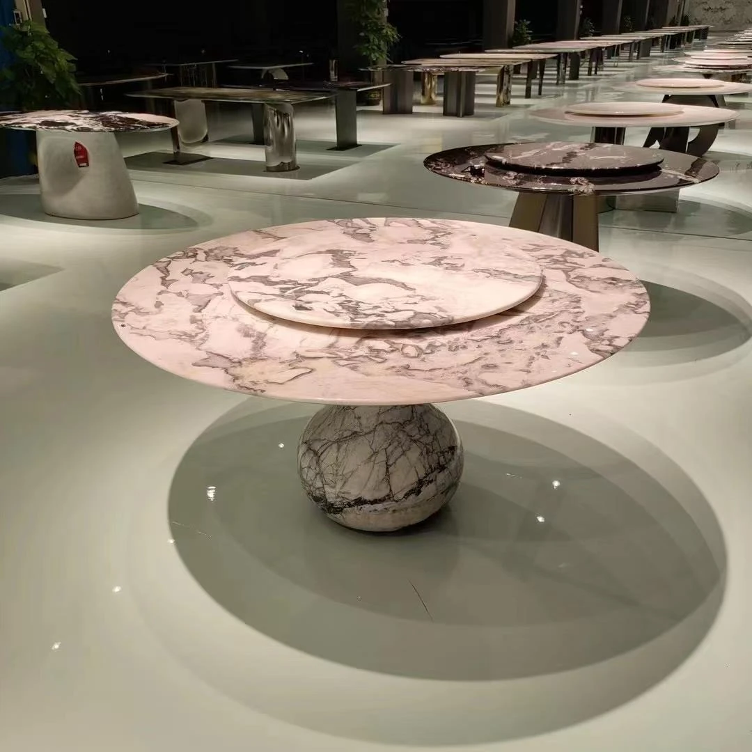 Luxury Natural Marble Round Dining Table - Modern Elegant Design for High-End Homes and Spacious Living Rooms, Perfect for Upscale Dining Experiences