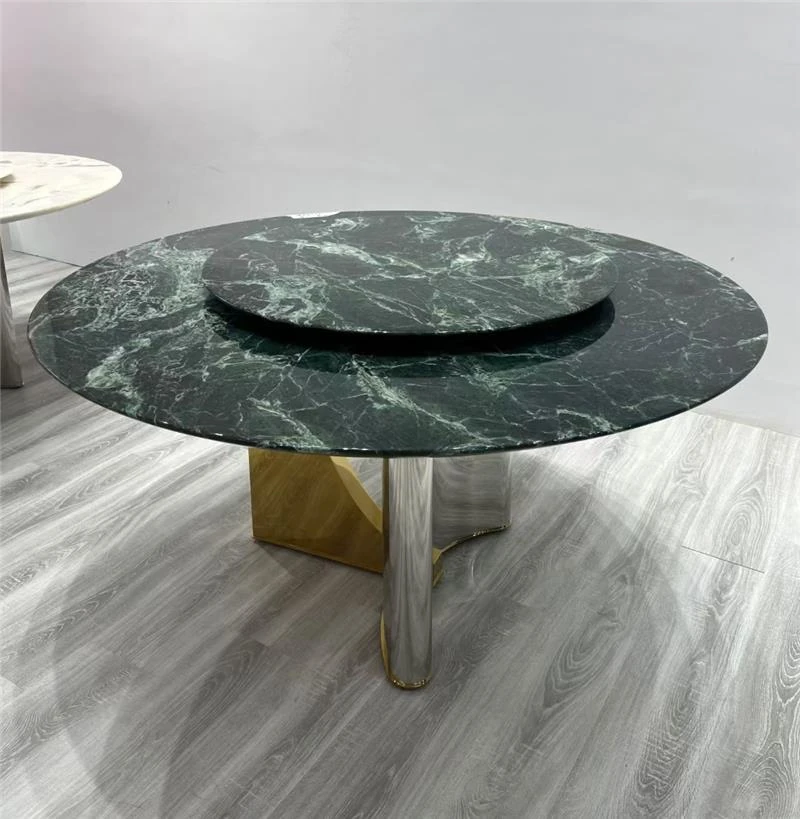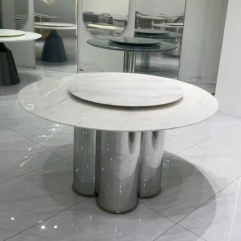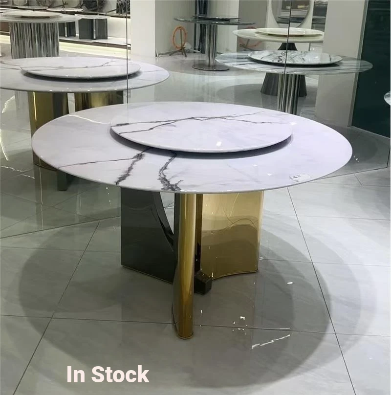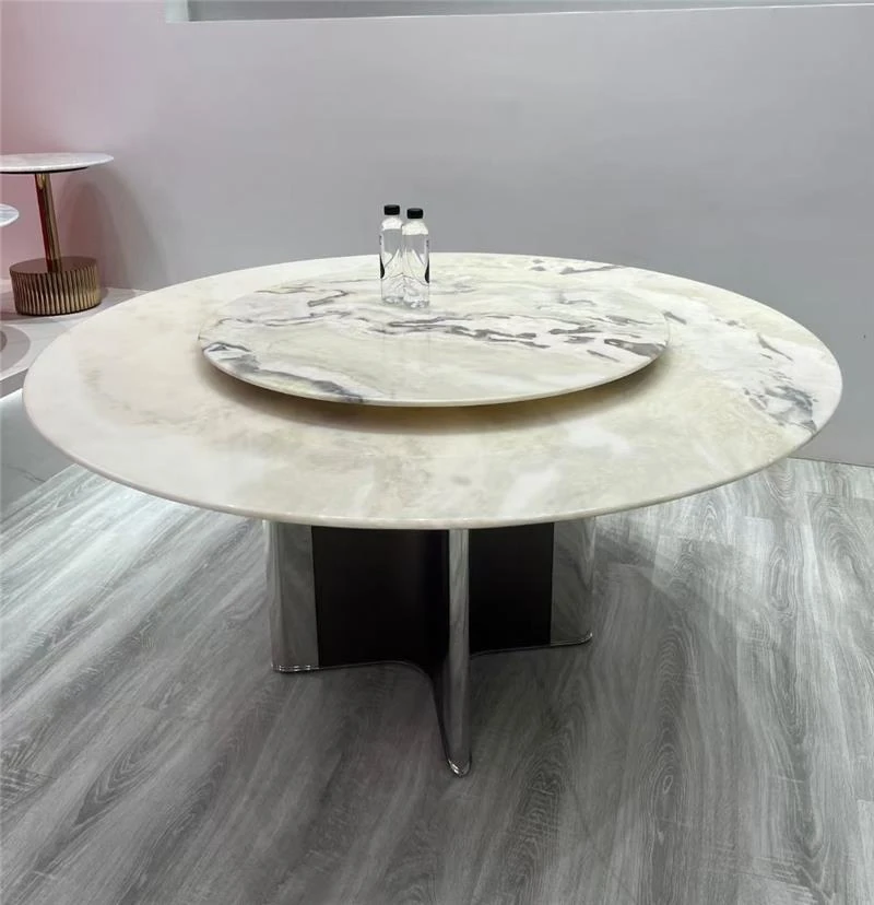 Luxury Stone Hotel Natural Marble Round Dining Table - Elegant Italian Design for Home, Perfect for High-End Villas and Spacious Living Areas, Featuring a Convenient Rotating Tray