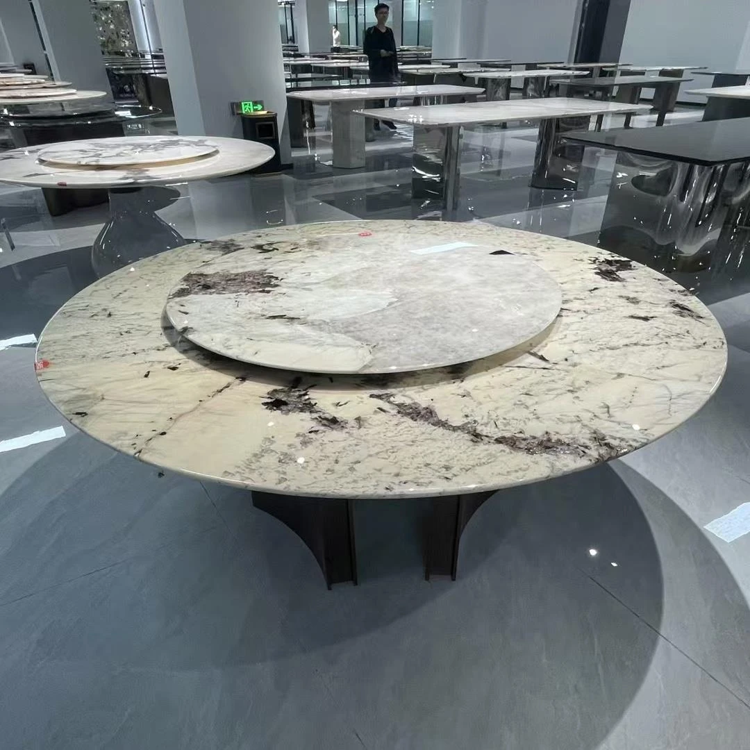 Modern Italian Luxury Marble Dining Table and Chair Set - Elegant Round Design with Rotating Feature for Home Use, Perfect for Sophisticated Gatherings.