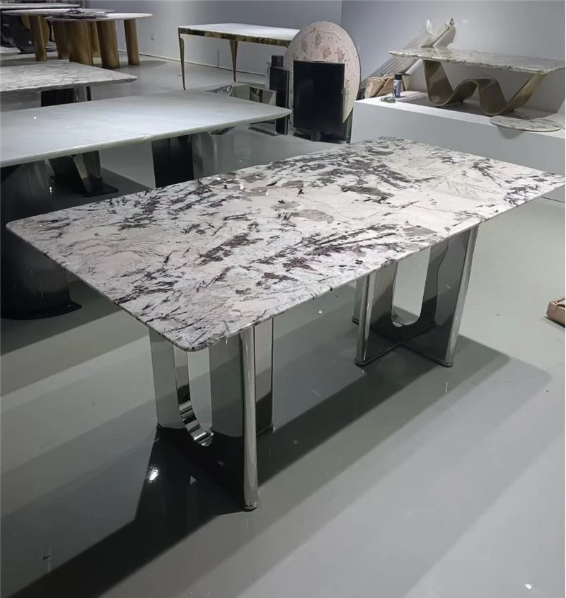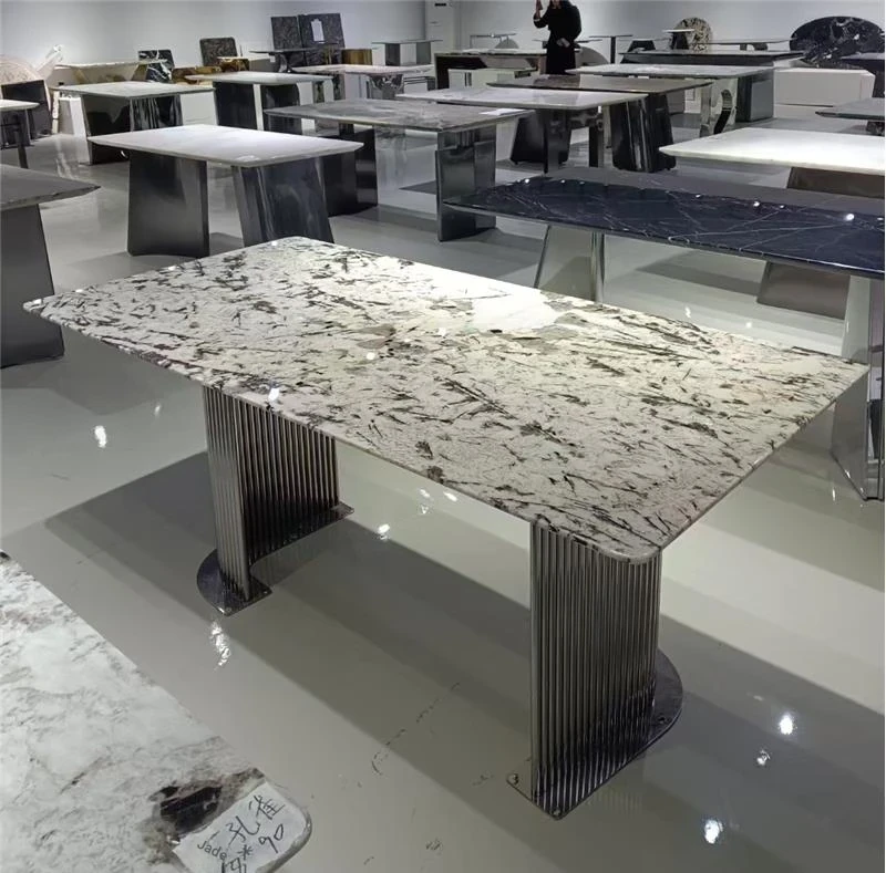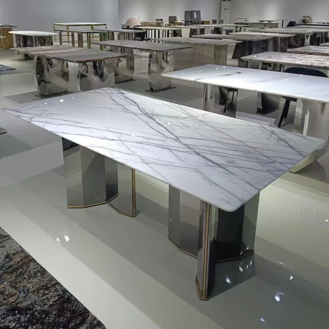 Modern Luxury Italian Marble Dining Table and Chairs Set with Rotating Tray - Elegant Rectangular Design for High-End Hotels and Stylish Interiors