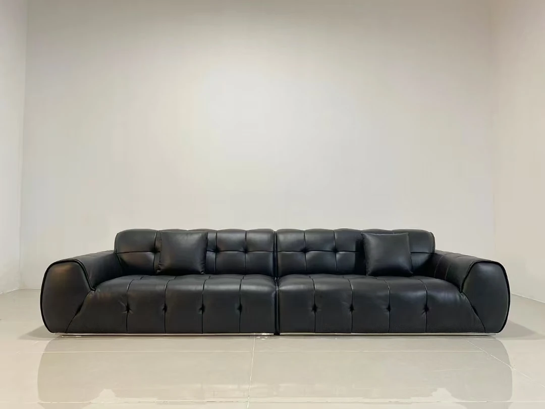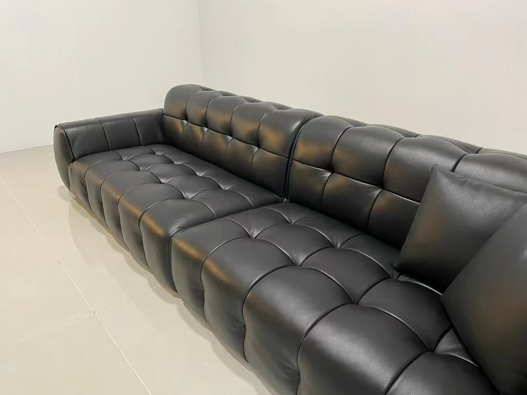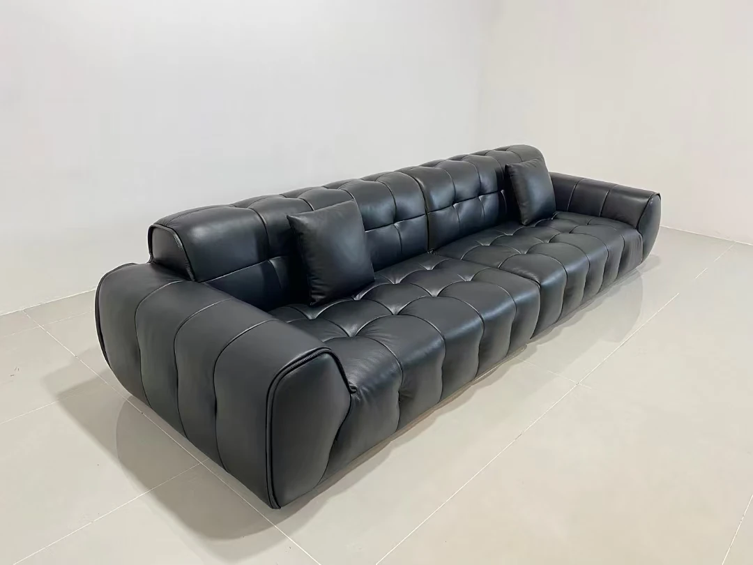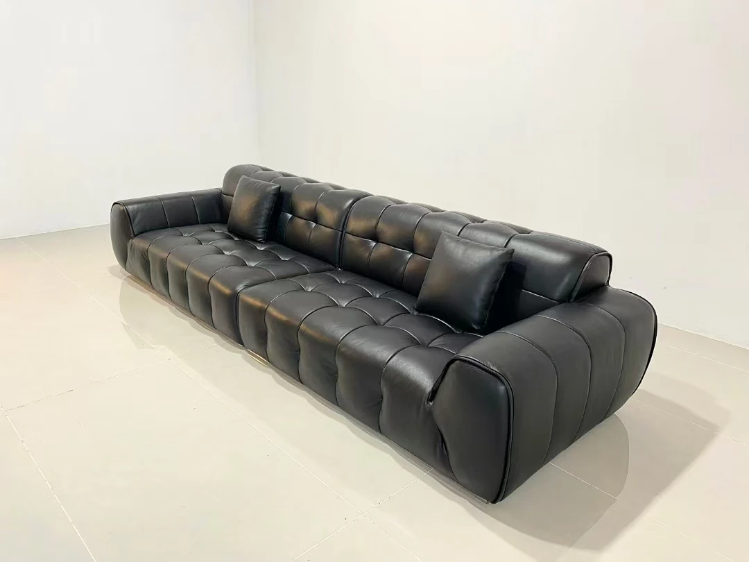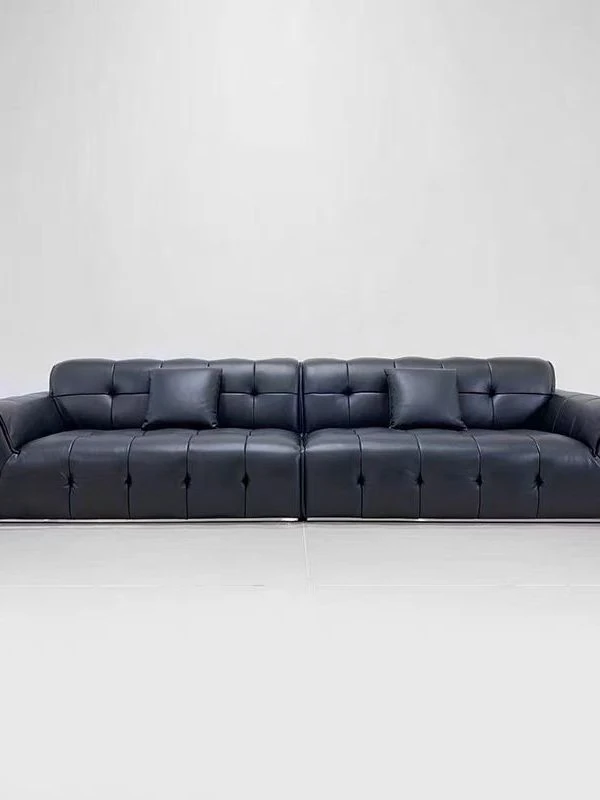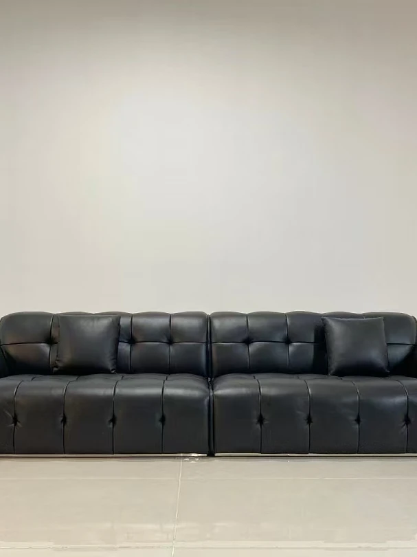 Modern Minimalist Black Leather Sofa - Designer Genuine Cowhide Straight Sofa with Medium Thickness Top Layer Leather for Contemporary Living Spaces