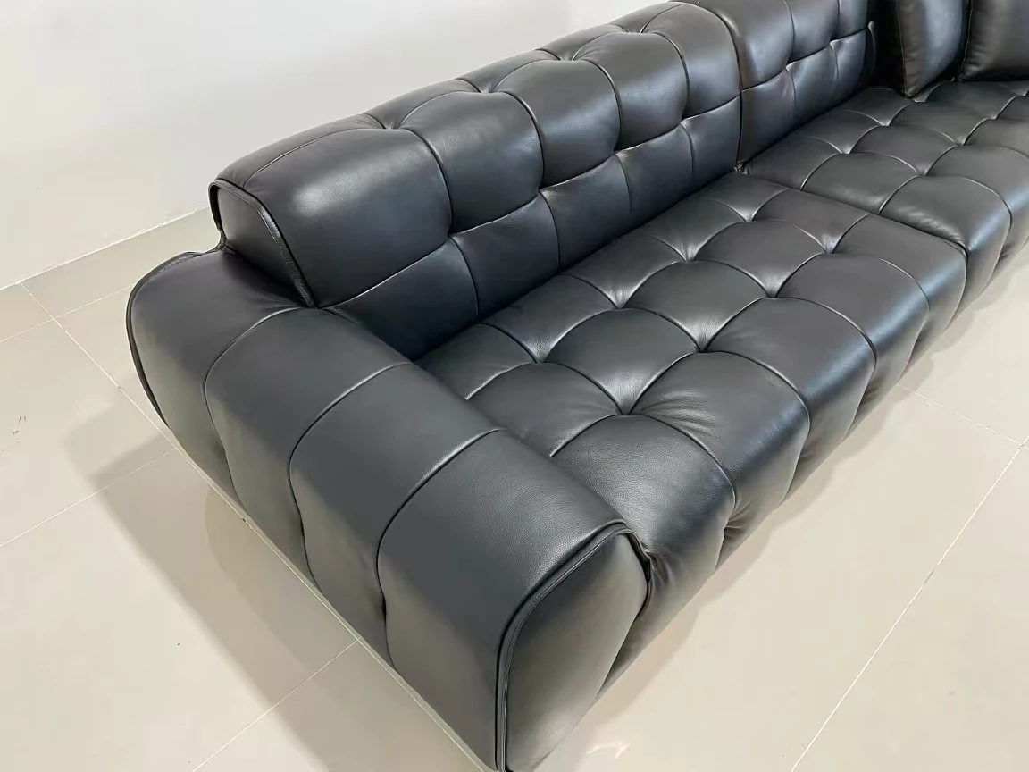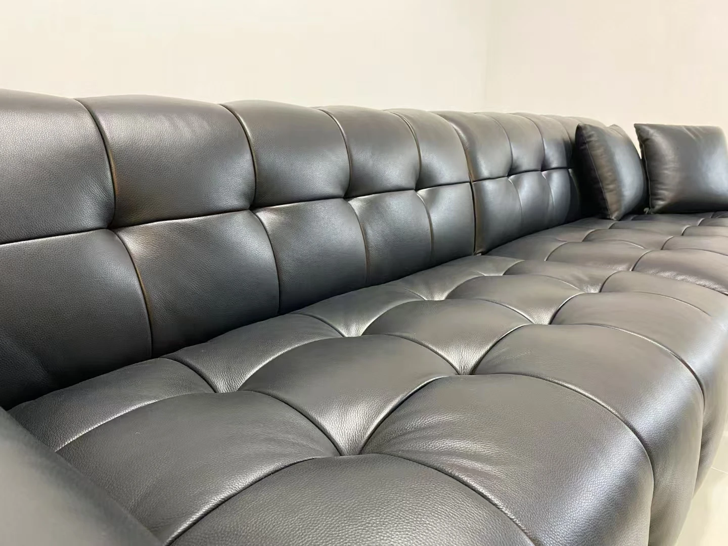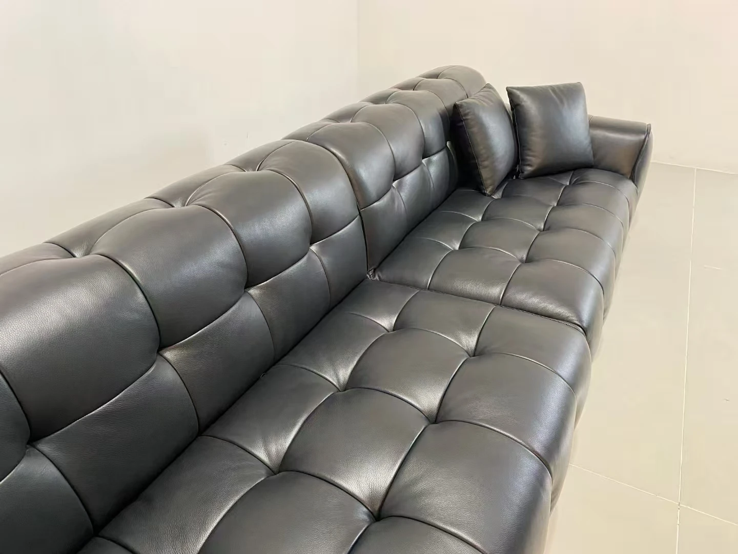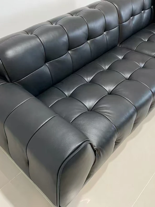 Modern Minimalist Black Leather Sofa - Designer Genuine Cowhide Straight Sofa with Medium Thickness Top Layer Leather for Contemporary Living Spaces