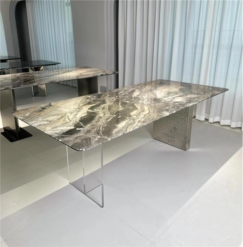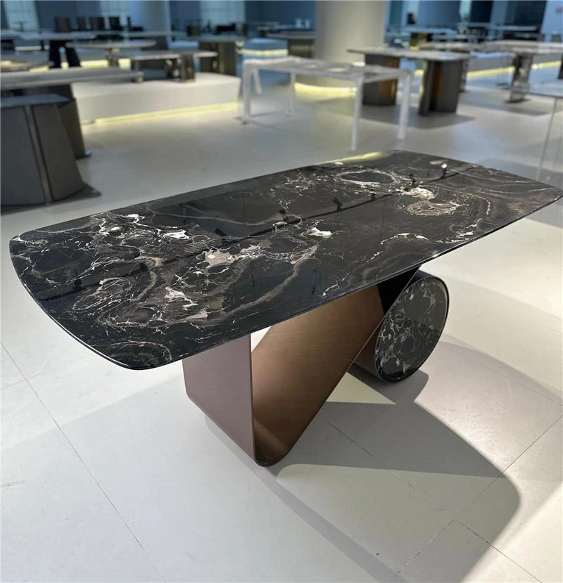 Modern Minimalist Italian Luxury Marble Dining Table and Chair Set with Rotating Tray - Elegant Rectangular Design for Upscale Gatherings