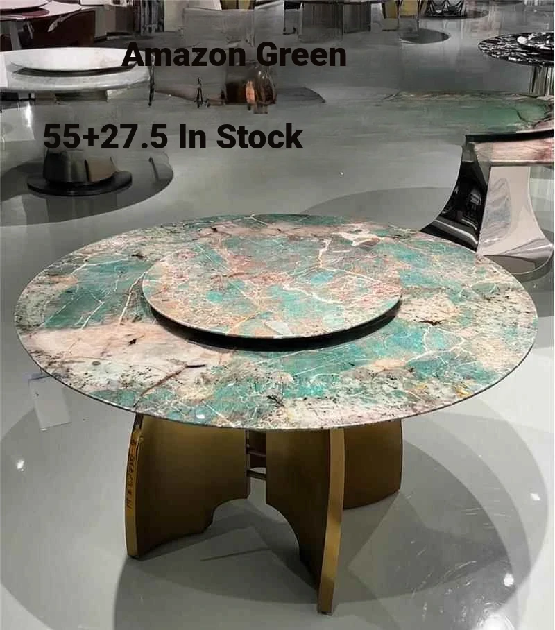 Modern Minimalist Luxury Green Amazon Marble Dining Table - High-End Italian Style Natural Stone Round Table for Elegant Homes