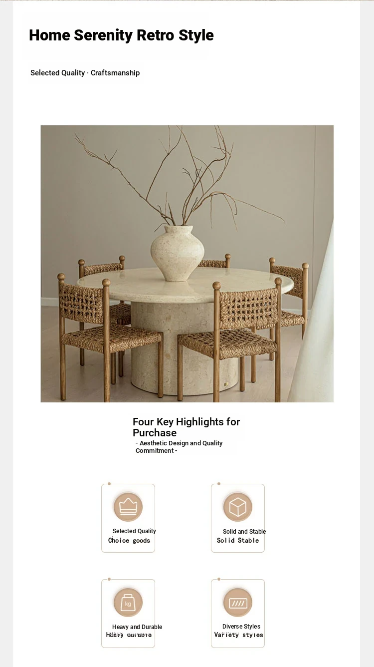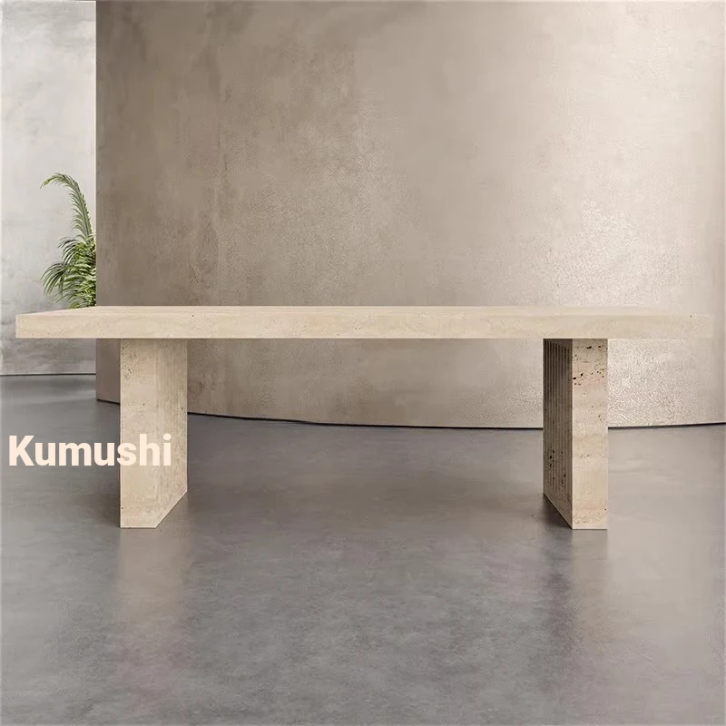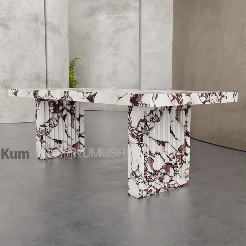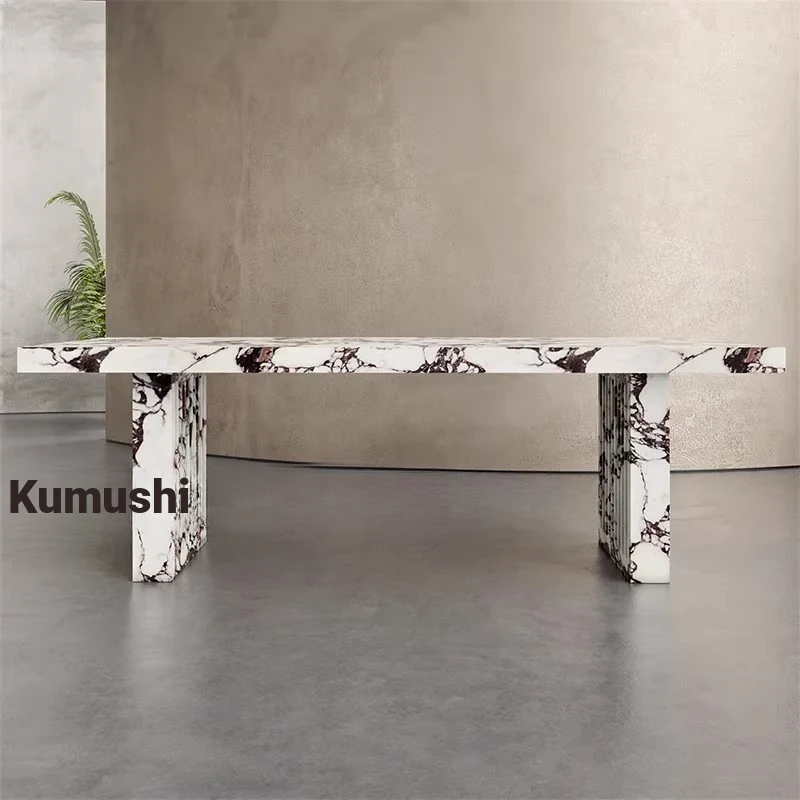 Modern Minimalist Natural Marble Dining Table and Chair Set - Luxurious Rectangular Home Dining Table for Elegant Dining Experience