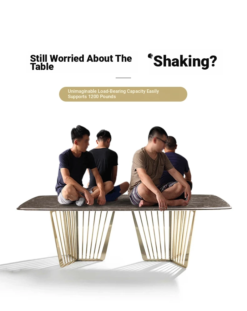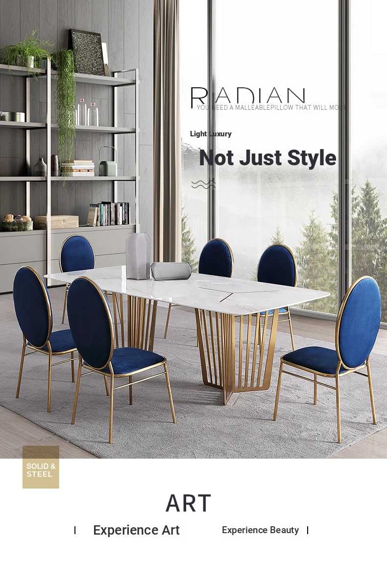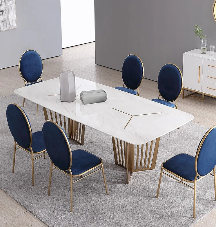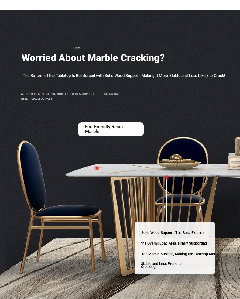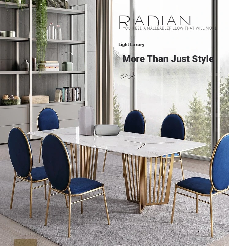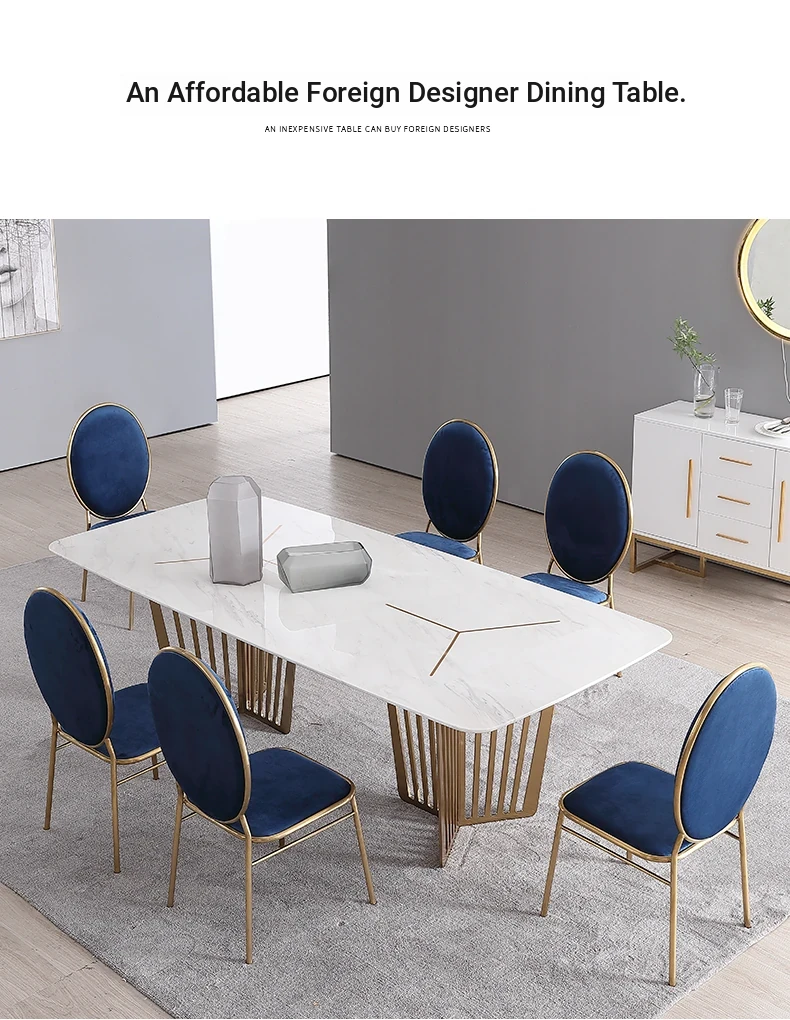 Nordic Marble Dining Table and Chair Set - Rectangular Modern Minimalist Dining Table for Small Spaces, Home Use, with Luxurious Iron Frame
